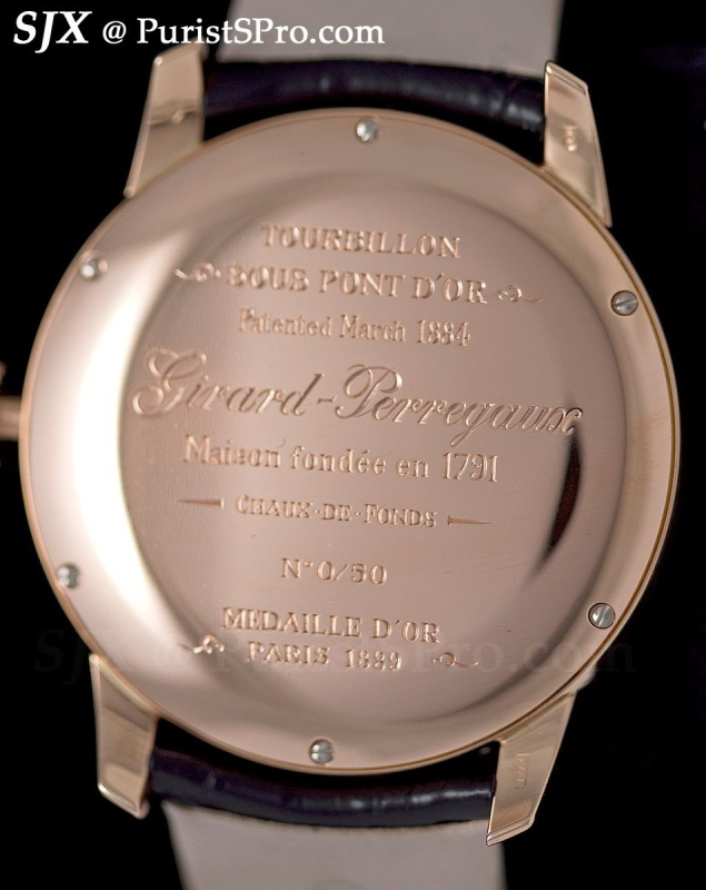 Girard Perregaux presented a fairly small collection this year with all the models being variants of existing models or calibres. As usual the highlights were variations of the GP tourbillon with Three Gold Bridges.