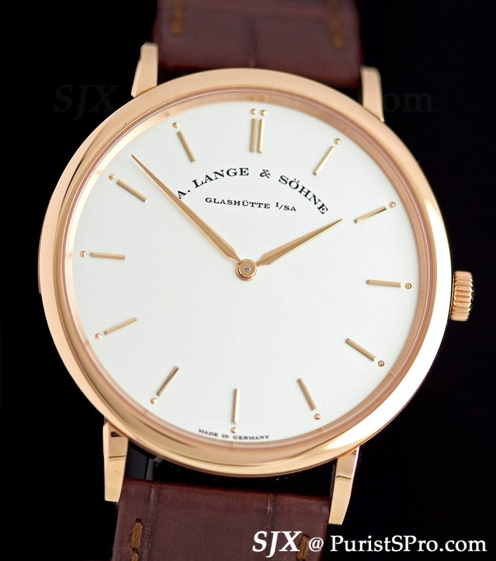 Two key design elements of the new Saxonia watches are the minute track and sloped dial flange.