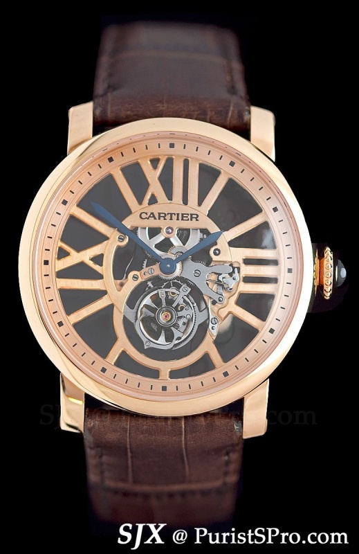 Using an almost identical movement is the Rotonde skeleton tourbillon which was previously only available in white gold. Now presented in rose gold making it very striking; it will probably look good on a ladies’ wrist.