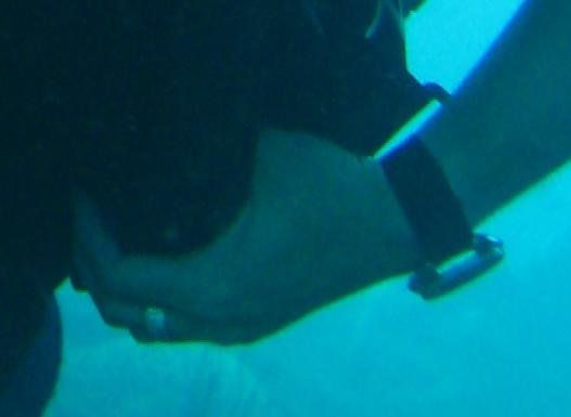 I usually wear a Suunto dive computer on the right wrist and a Citizen Aqualand on the left (lots of back-up functions on the Aqualand) with a little clipper dive compass on the strap. (refer to photo of me hanging from SMB). I did bring, this time, my old '75 Seiko 6105-8119, but only wore it on the last few dives (forgot I had it) but did get it down to 31m. Sadly, I have no good shots of it (grrr, only side shots, no dial ones). But I'll see if I can crop something reasonable to post.