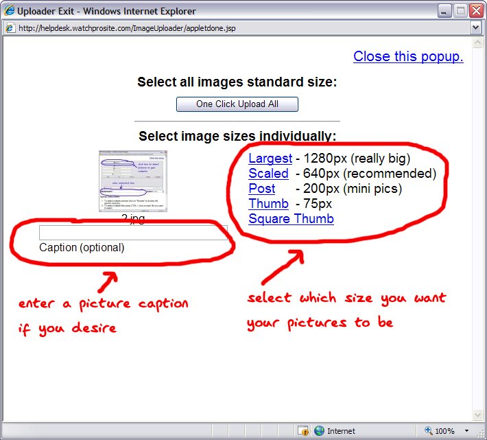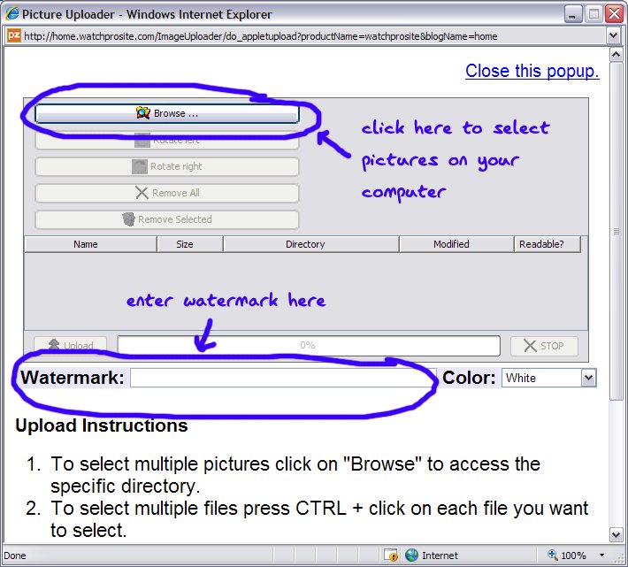 a) easily upload multiple pictures at the same time with a couple clicks of the mouse (we've set a maximum of 48 pics at a time)