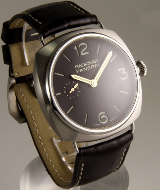 Very cool while at the same time very different than what you have. Historic instead of contemporary, Radiomir instead of Luminor, hand-wound instead of automatic, titanium instead of steel, in-house movement instead of contracted, brown dial instead of black, solid hands instead of skeleton, and on and on.