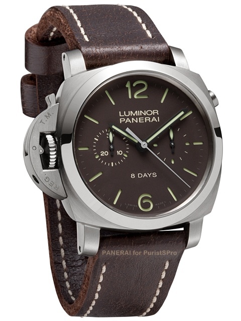 The PAM345 http://basel.watchprosite.com/show-forumpost/fi-636/pi-4360078/ti-682528/ doesn't get much chatter on the boards since I feel it's not one of the popular Panerai's. It's a Destro model so if you like left-handed watches, then this watch is for you. It has the added feature of a monopusher chronograph and the beautiful tobacco dial