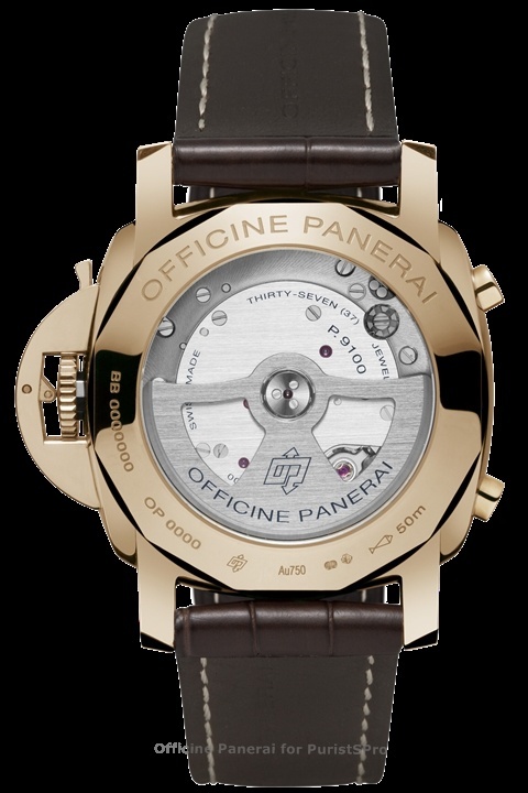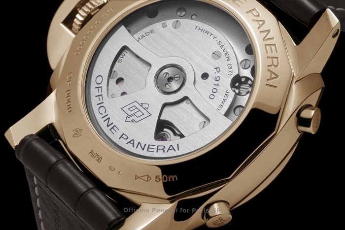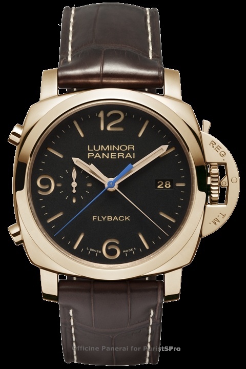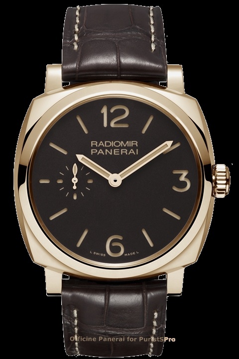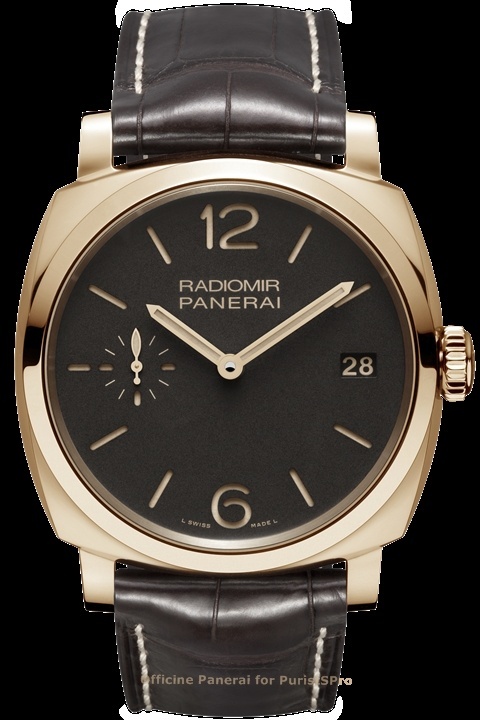 The Radiomir 1940 (PAM00512) and the Radiomir 1940 Oro Rosso (PAM00513) are supplied with a black or brown alligator strap, and they are part of the Historic Collection.