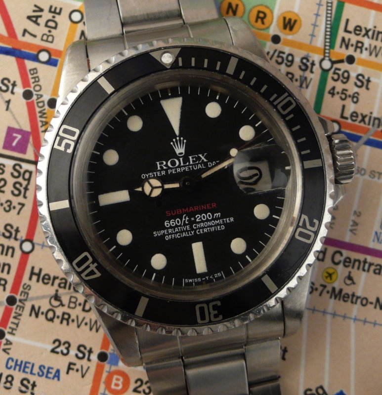An early 1970’s Submariner ref. 1680 with the full serial number engraved inside the caseback: