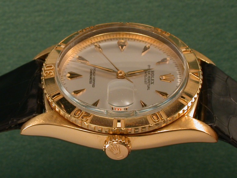 This is a reference 6609 Turn O Graph (a.k.a. Thunder Bird) circa 1960 with vintage leather straps.