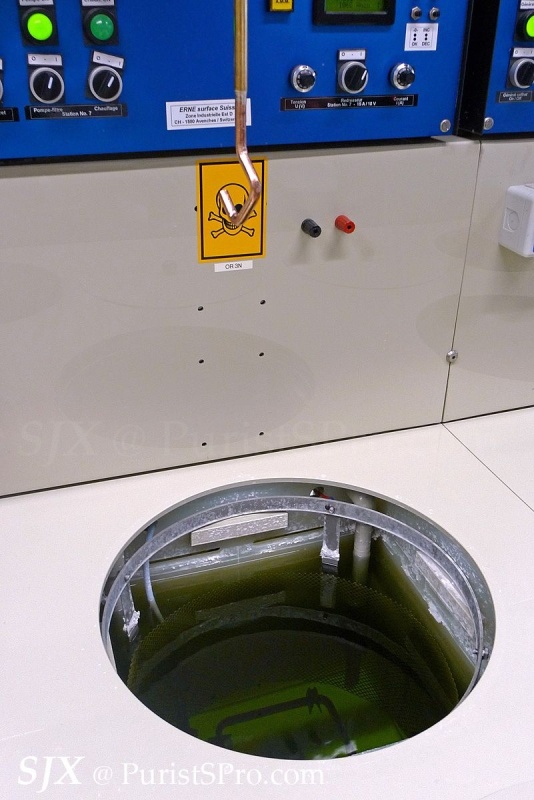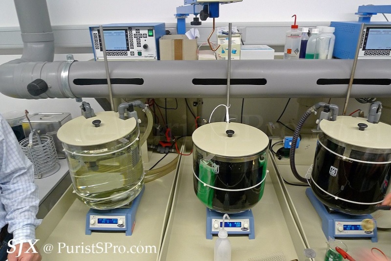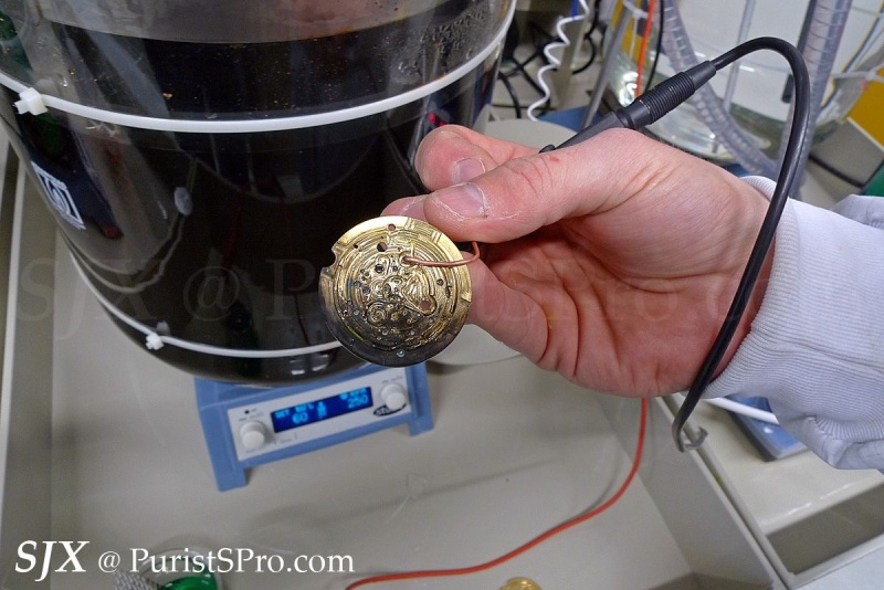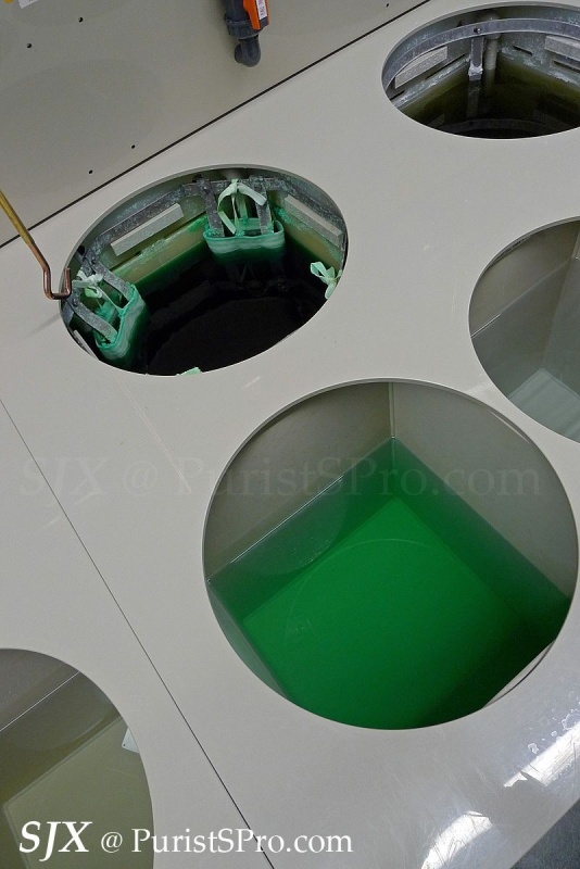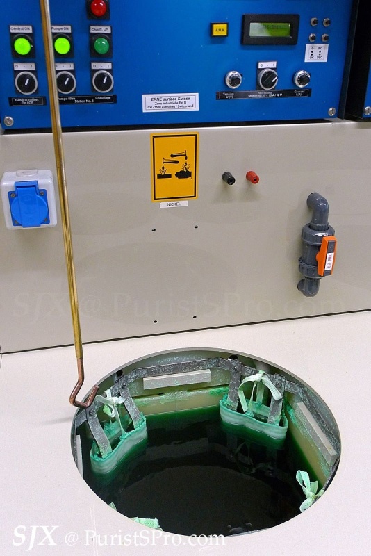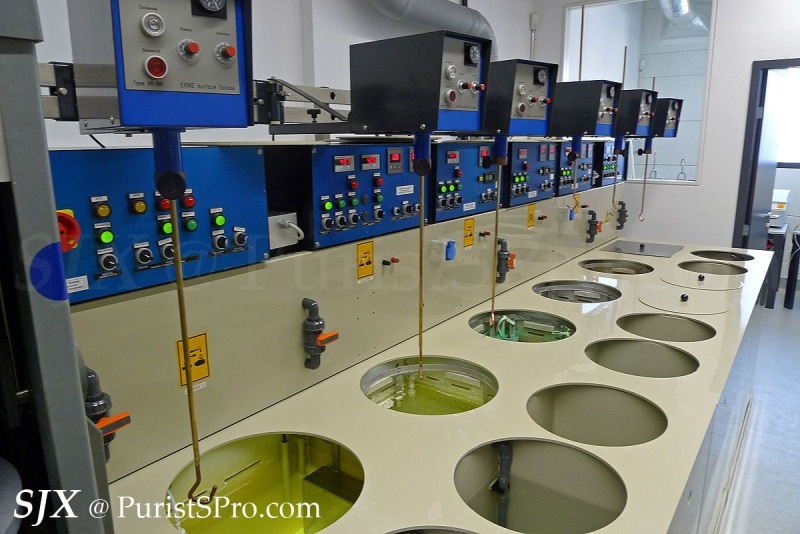 This is unusual for a watch manufacture – an in-house electroplating and coating workshop. These are not too common at watch factories, especially smaller ones like Hublot, because of the special permits required due to the hazardous chemicals needed to do plating and coating.