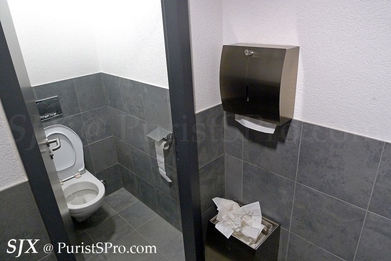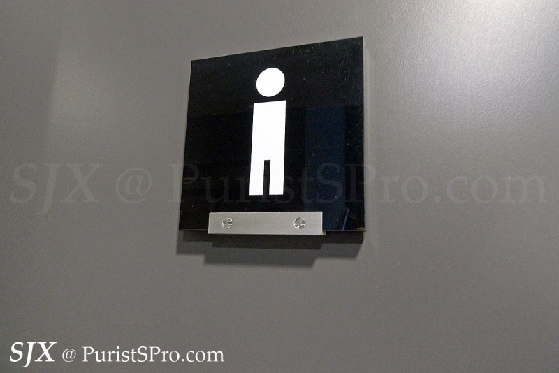 Most telling of all are the toilets. Not only are the insides of the toilet tiled in grey, but the signs on the toilet doors are fixed with “H” screws.