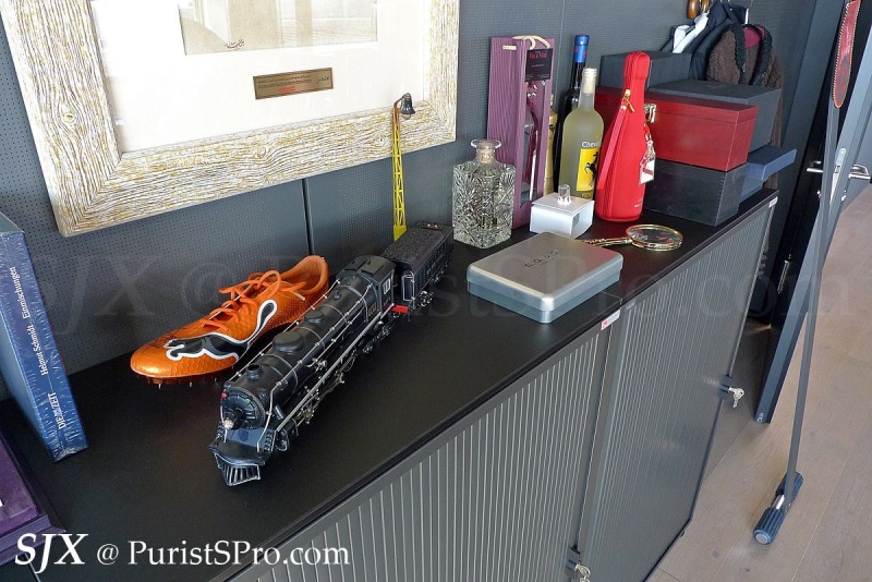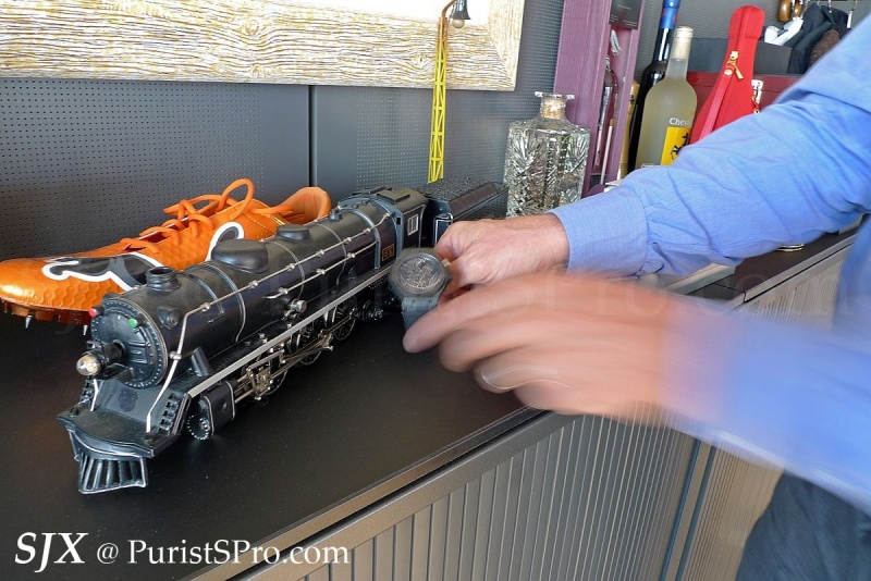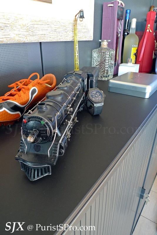 I had to ask why almost every Hublot is black or grey or some shade in-between. JCB pointed to the steam train models he has scattered around the office, and explained he loved steam trains as a boy, and most trains are black and grey.