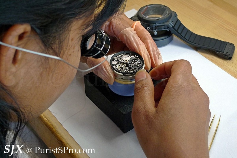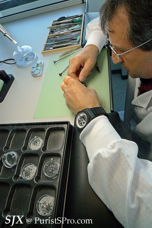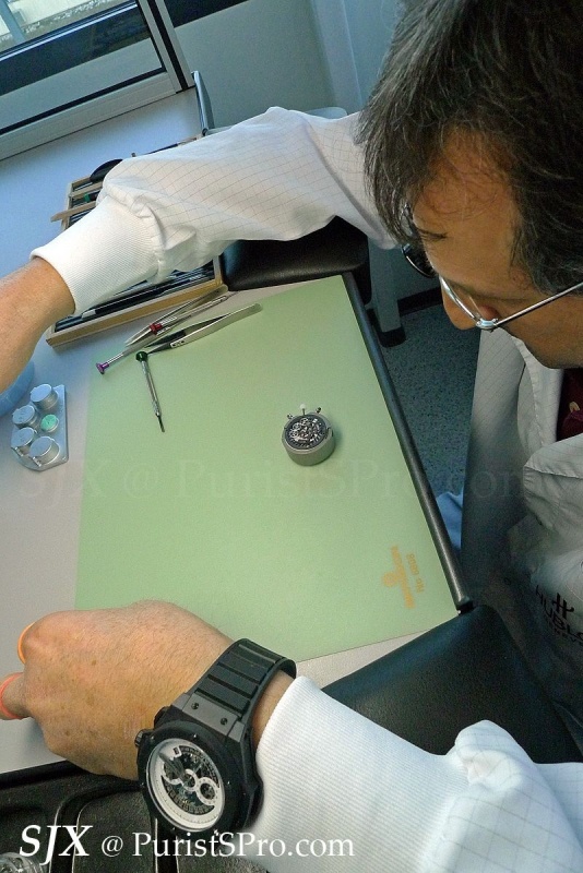 Movement assembly depicted here is for the entry- to mid-range watches, like the UNICO, not high complications. The latter is entirely done in the Confrérie Horlogère Hublot atelier.