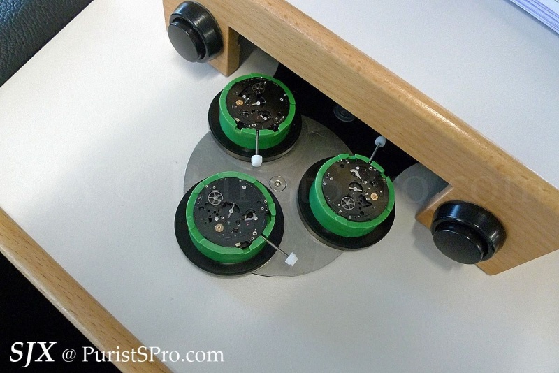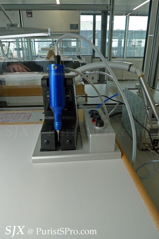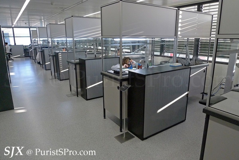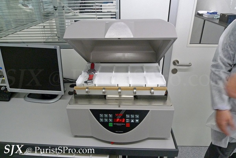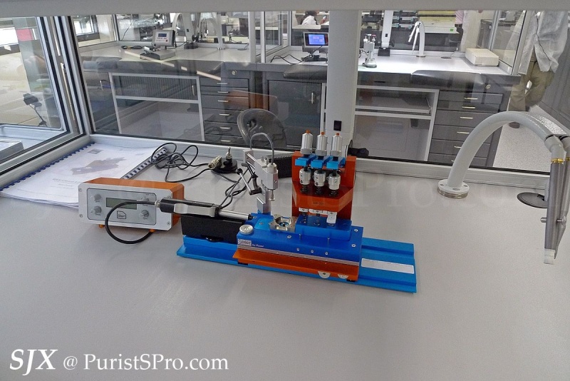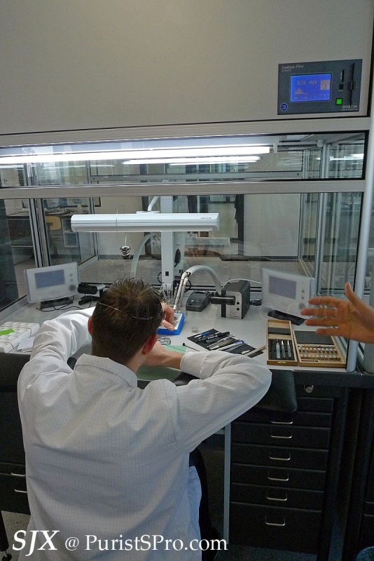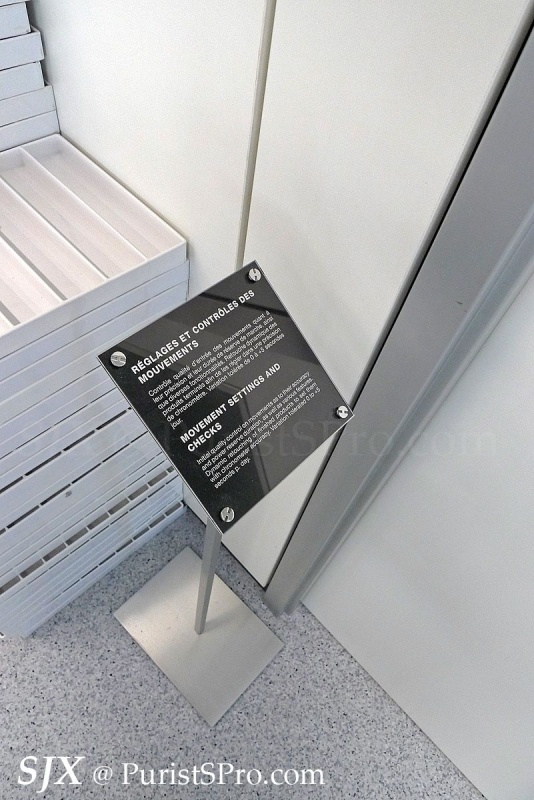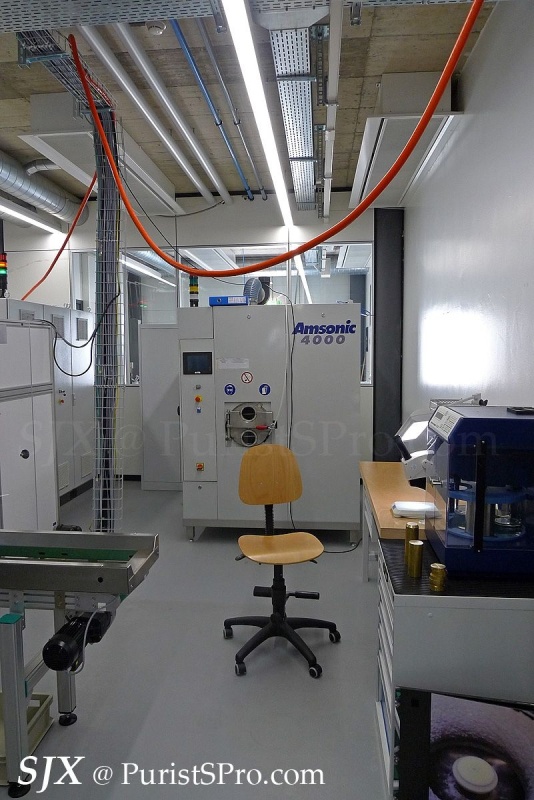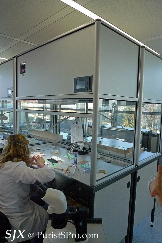 One of the interesting aspects of the assembly area is the air curtain fitted in each of the booths. These laminar flow booths create a local clean area which allows the movements to be assembled in a contaminant-free zone. This is unusual and not common in Swiss watchmaking (Seiko assembles high-end movements in clean rooms).