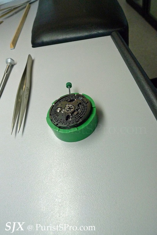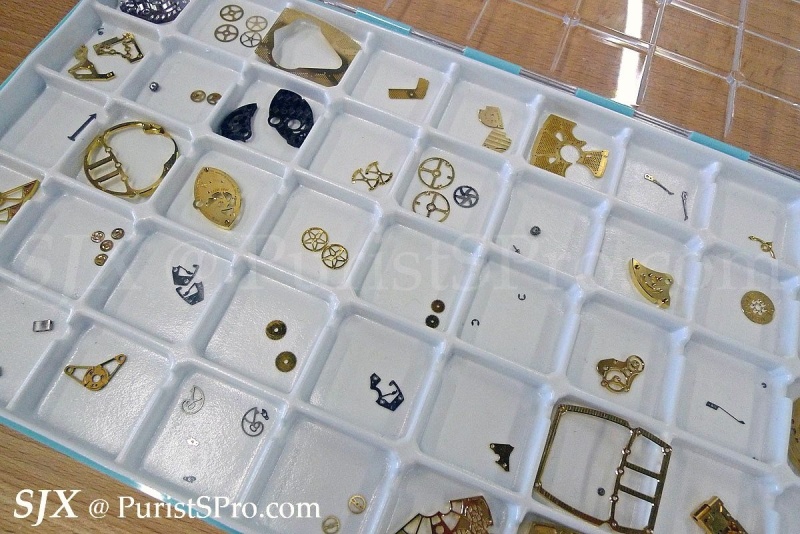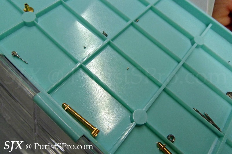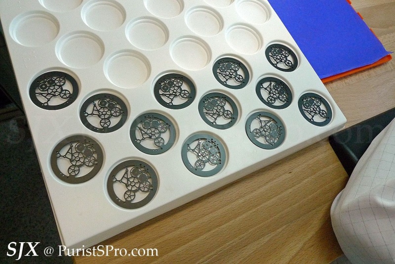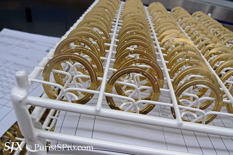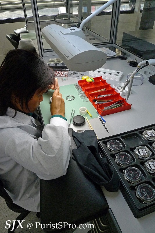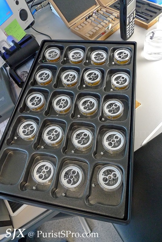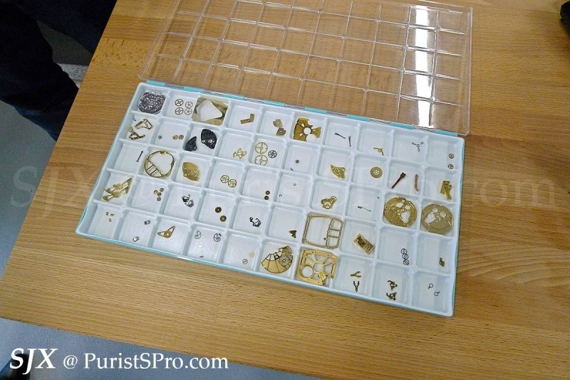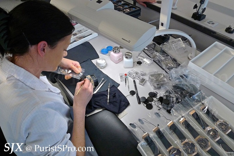 The movement itself is then put together in another workshop, assembly line style with each watchmaking fitting certain components.