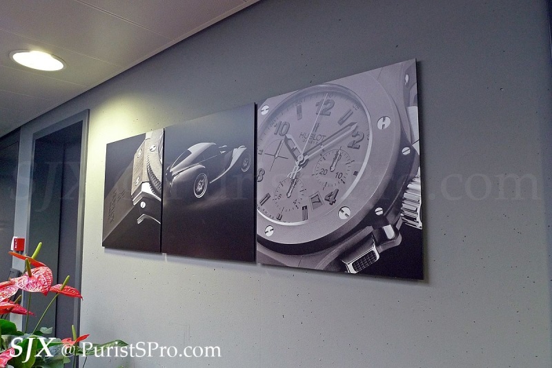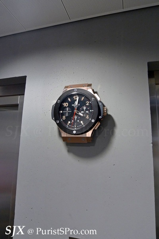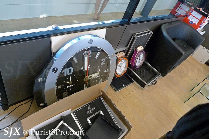 The Hublot logo is everywhere, and so are Hublot clocks.