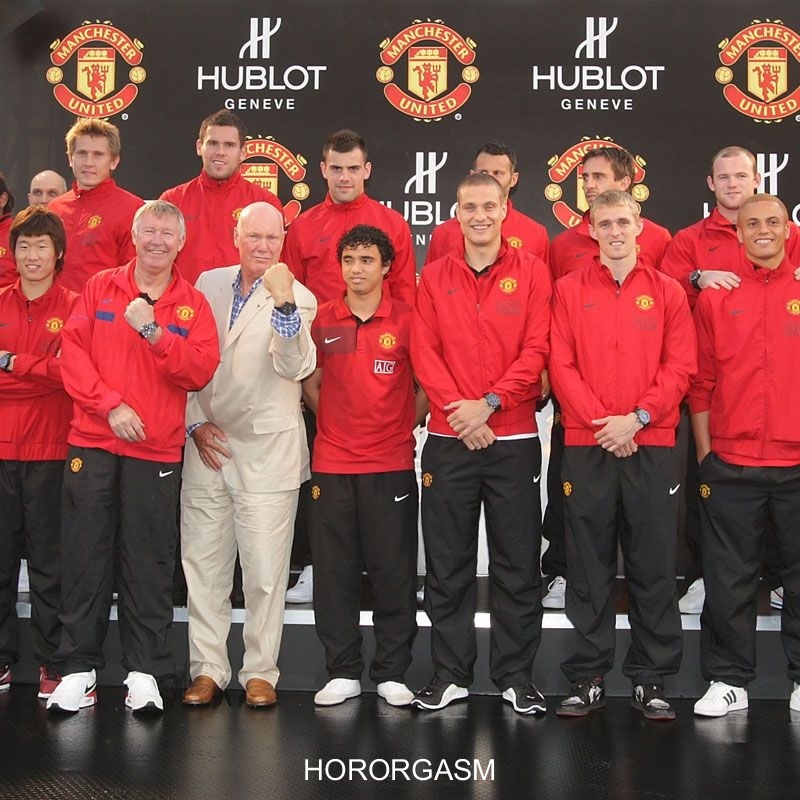 Hublot has announced its partnership with the legendary Football Club Manchester United, in the mythical stadium of Old Traf ford. The most prominent members of Manchester United Family, amongst which Manager Sir Alex Ferguson, the Chief Executive David Gill, the players Cristiano Ronaldo, Carlos Tevez, Ryan Giggs, Rio Ferdinand, Anderson and Ji-Sung Park, gathered with Hublot CEO Jean-Claude Biver at the launch event in the heart of the “Theatre of Dreams”.