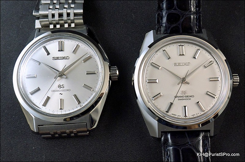 On the left is the original 44GS (too bad, the previous owner(s?) have polished the case too much....), which is still as accurate as the modern one.