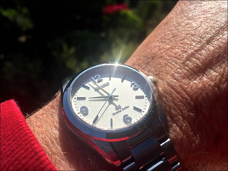 Most of mine do, and I find it a very endearing characteristic of Grand Seikos. I've got my wife's GS here, known as the SBGF009, with some kind of frosty, sparkly treatment on its dial.