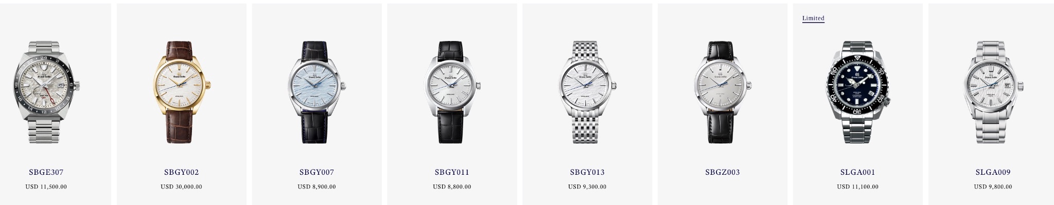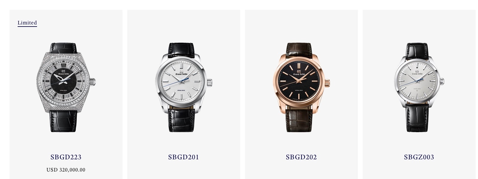 Manual-winding Spring Drive Caliber 9R31 (Manual winding) | ±15 seconds per month (±1 second per day) | Approx.72 hrs | 30 jewels | -Dual-Spring Barrel -Power reserve indicator |