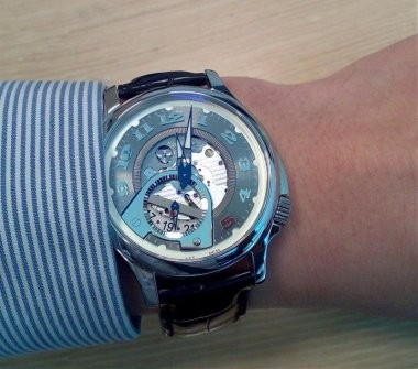 A couple of pictures ot the Tech Twist. It has an amazing openworked dial, with multiple layers. There's a comparison pic between the standard Tech Twist and the Sincere HH Tech Twist. Enjoy! Chopard LUC Tech Twist Chopard LUC Tech Twist Close-up of the multi-layered openworked dial Another view of