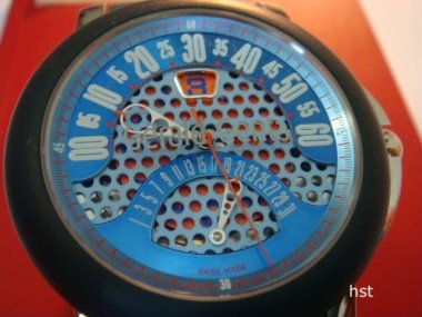 I am looking at selling a blue/orange Gerald Genta Bi-retro Arena. Jumping hour and retrograde minutes/date. The watch looks very chic and sporty. Complete set with full papers and inner/outer box. Original GG clasp. Warranty is dated March 2008. Condition: Overall is 97%. Only very light scuffs on