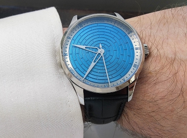 The dial is made out of titanium which is then anodized and polished. So any color that's within the anodizing color spectrum is possible.