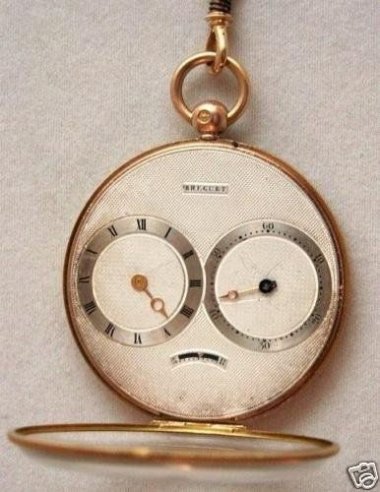 ...sold on July 4 1829 for 1.800 francs to Monsieur Espine Currently on "a very popular auction site" (Item number 270304346125) a very beautiful and what looks to be authentic Breguet Pocket regulator is being offered. Although at 1829 this is after AL Breguet's death, nevertheless, it is rare such