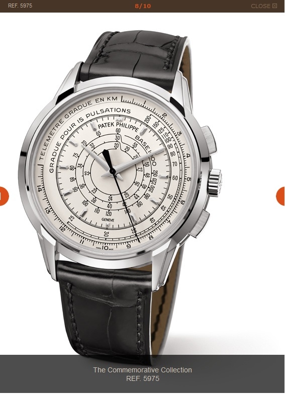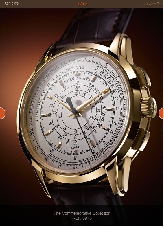 The 5975 (4675 for ladies) exists in rose, yellow and white gold and Platinum. It is 40mm x 10.25mm and houses a 28-520 caliber (self-winding)