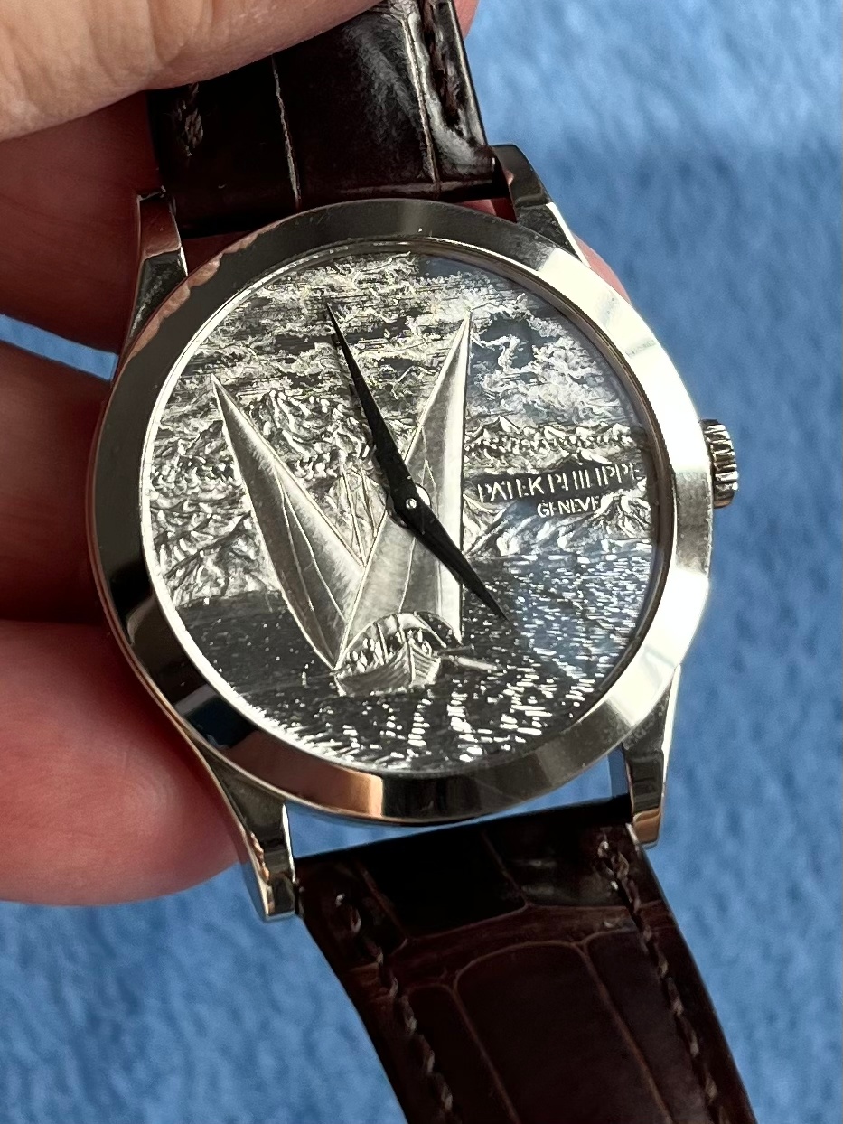Just amazing what they have achieved on this silver dial by engraving it. You can even see the people in the boat.Enjoy your Sunday!