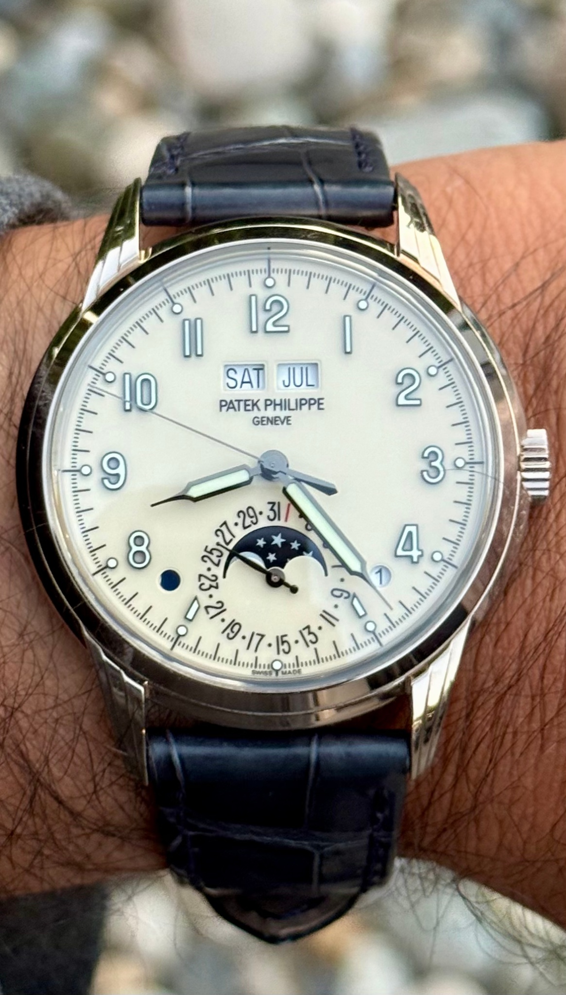 This 5320G-001 perpetually amazes me, with different light and angles. This pic shows off the cream lacquer dial and navy blue gator strap to good effect. ...