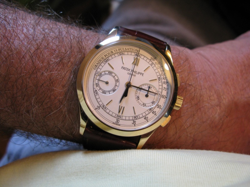 and have it. As of late, the market place has been soft, to say the least, on this reference. I do believe down the road they will be quite the collectible. I wear the watch daily and it is a joy to own and wear. People just like the larger 5070 at 42mm and the fact it is Lemania. The sharp edge bezel may be a concern but the case is classic Patek on many references. As happens so often, a new watch comes out and the investor insider/elite grab them all up sealed to resell and the average Joe has to wait. If the investors get nervous they sell all at once, so there are deals out there. Once they are gone, who knows, but we have a nice watch to wear for the present and that is the best of the equation.