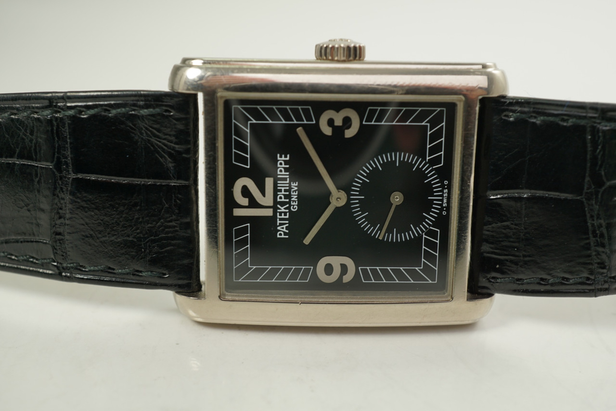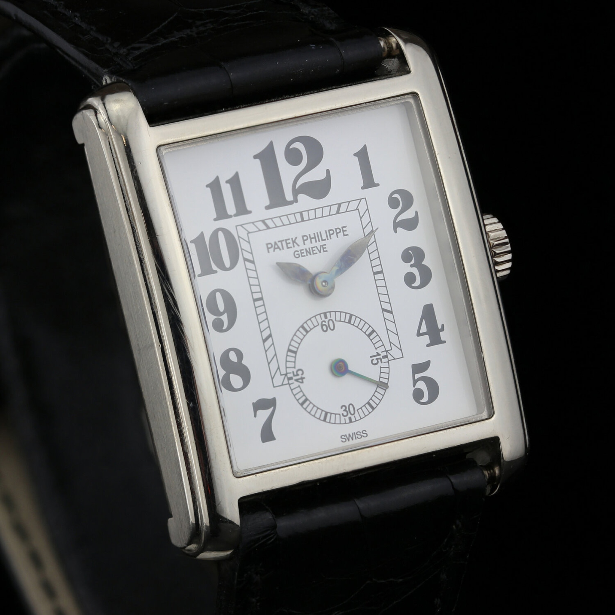 A/ Black dial with big 3, 9, 12 and rectangular hands