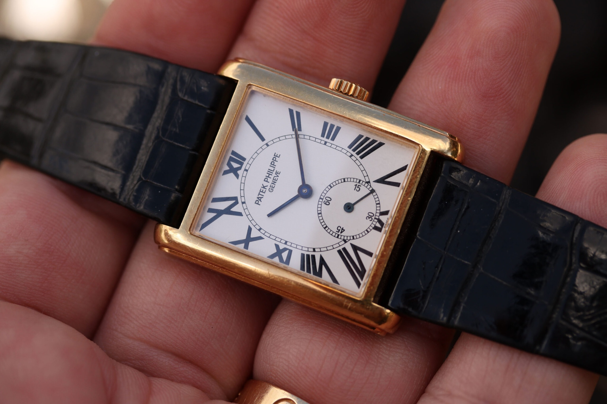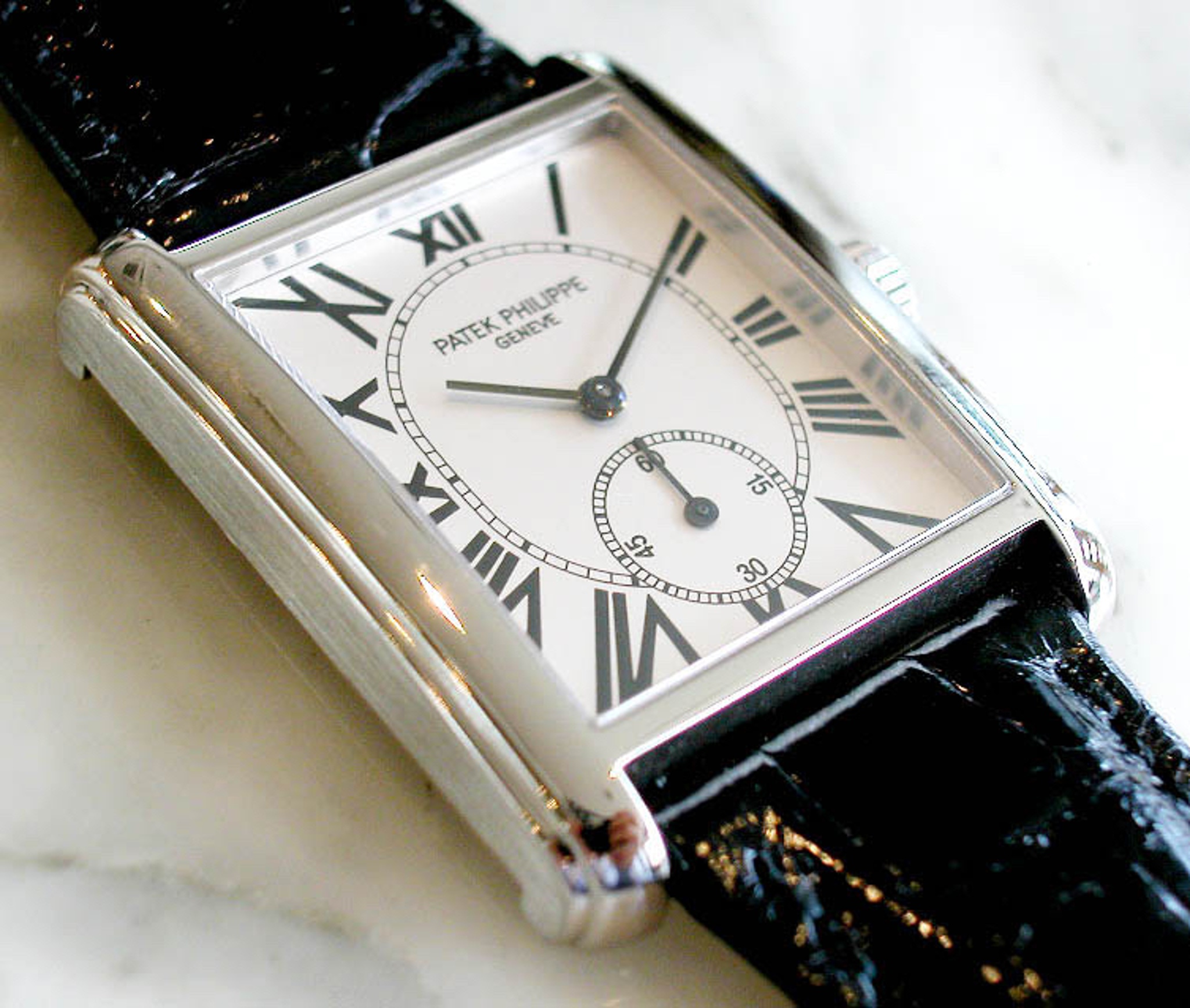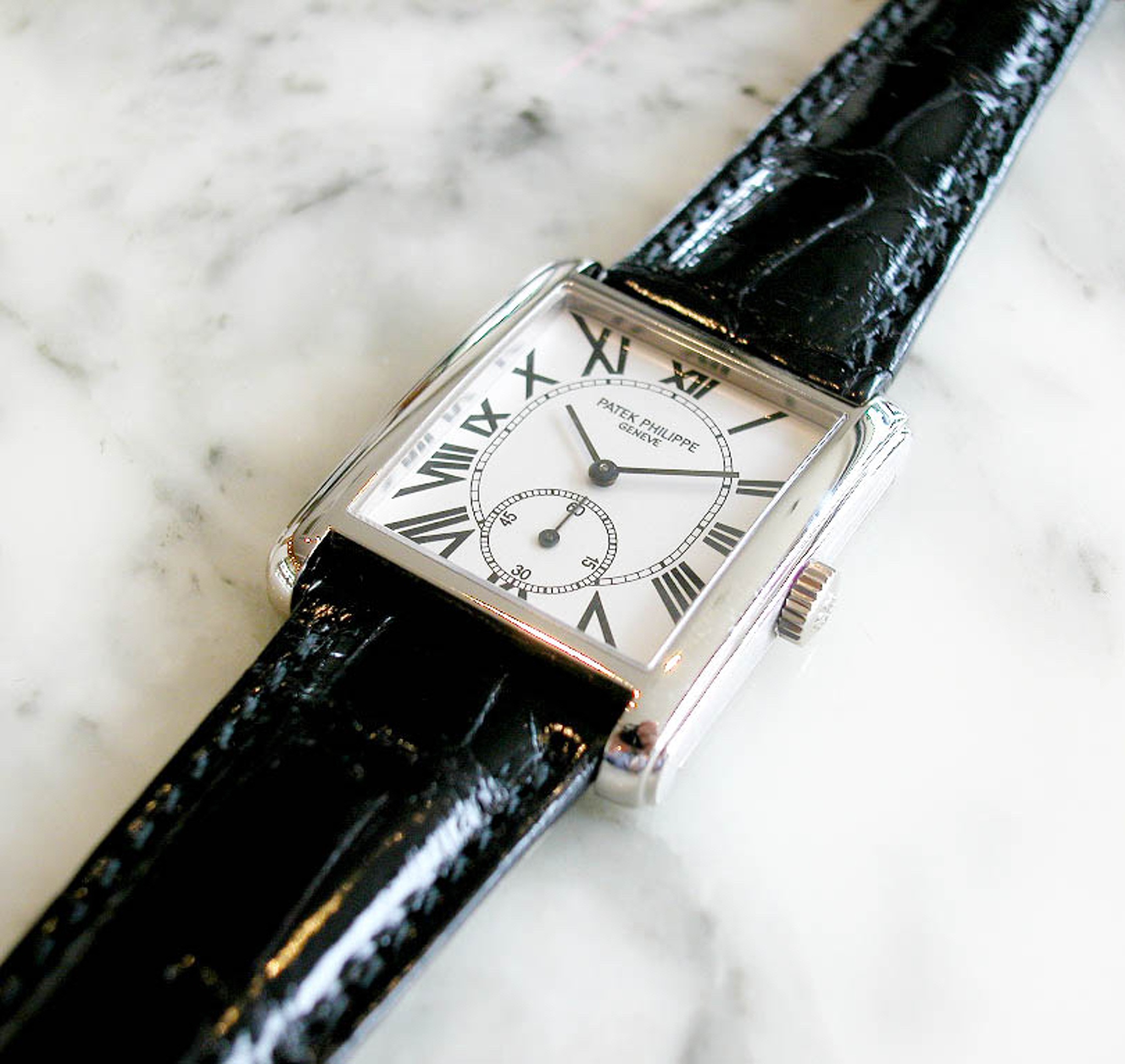 C/ White dial with Roman numerals and thin rectangular hands