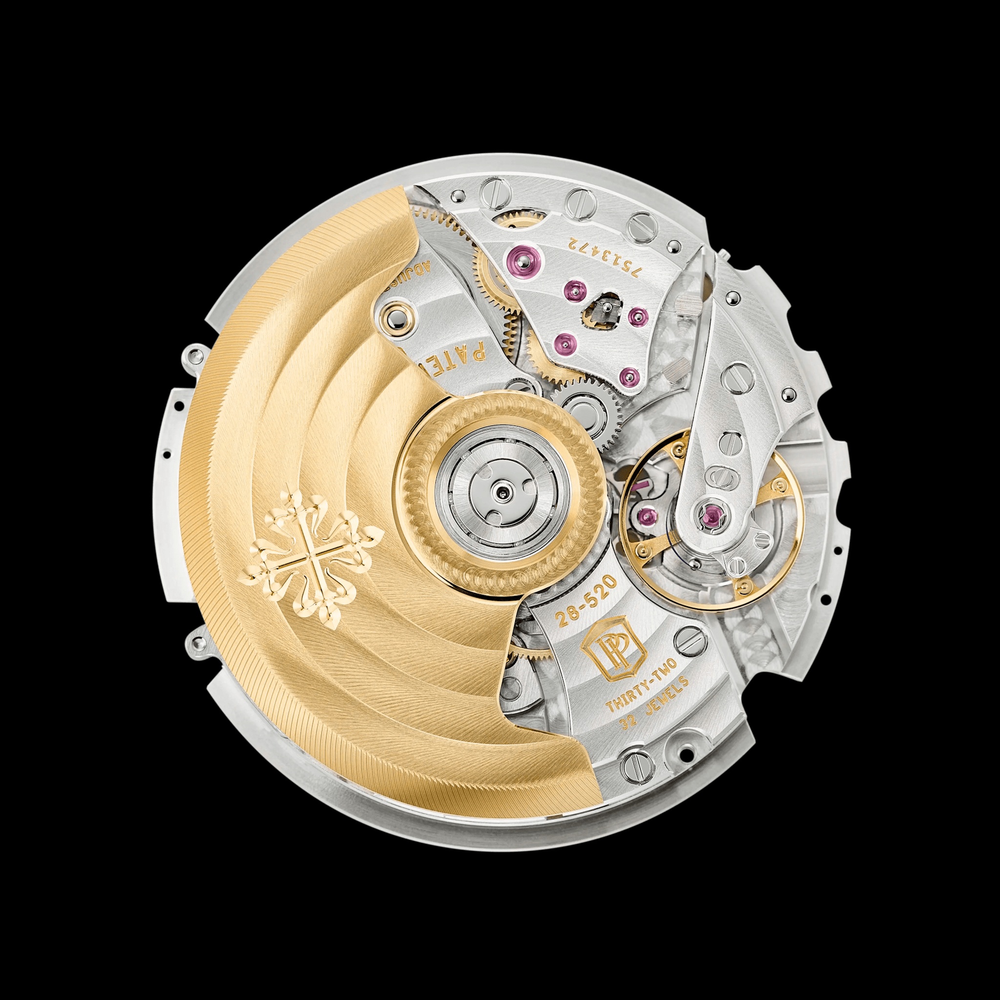 caliber CH 28-520, an automatic movement with a column wheel and a vertical clutch allowing to keep the chrono hand running constantly.