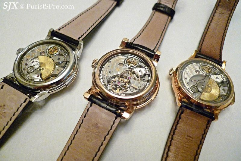 Here are video clips of the references 3979J, 5078P and 5016R minute repeaters from Patek Philippe. These are not showroom watches, they are owned by collectors who have worn them. The 3979 is a couple of years old while the 5078 and 5016 are fairly new.