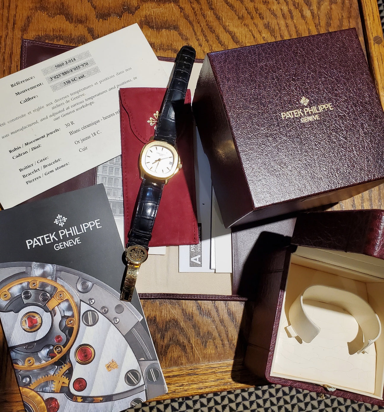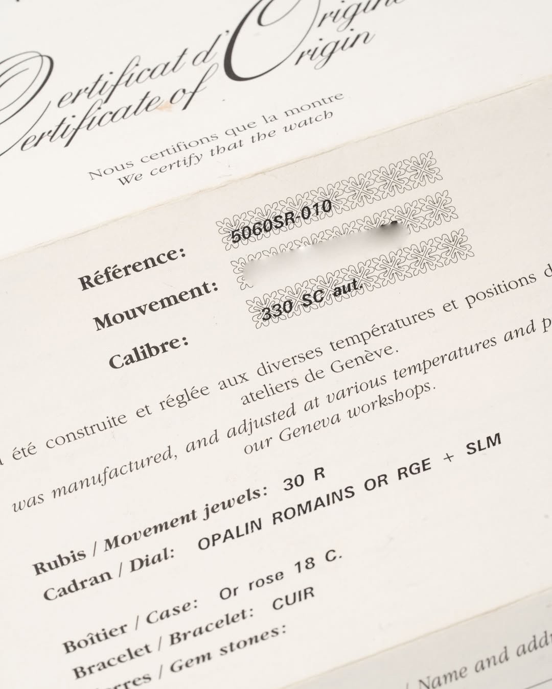 This ref. 5060S (sometimes referenced without the 'S') was produced mainly in yellow gold (5060SJ) but also in rose gold (5060SR) and different dial variants were made, which you can see below. It is powered by caliber 330 SC.