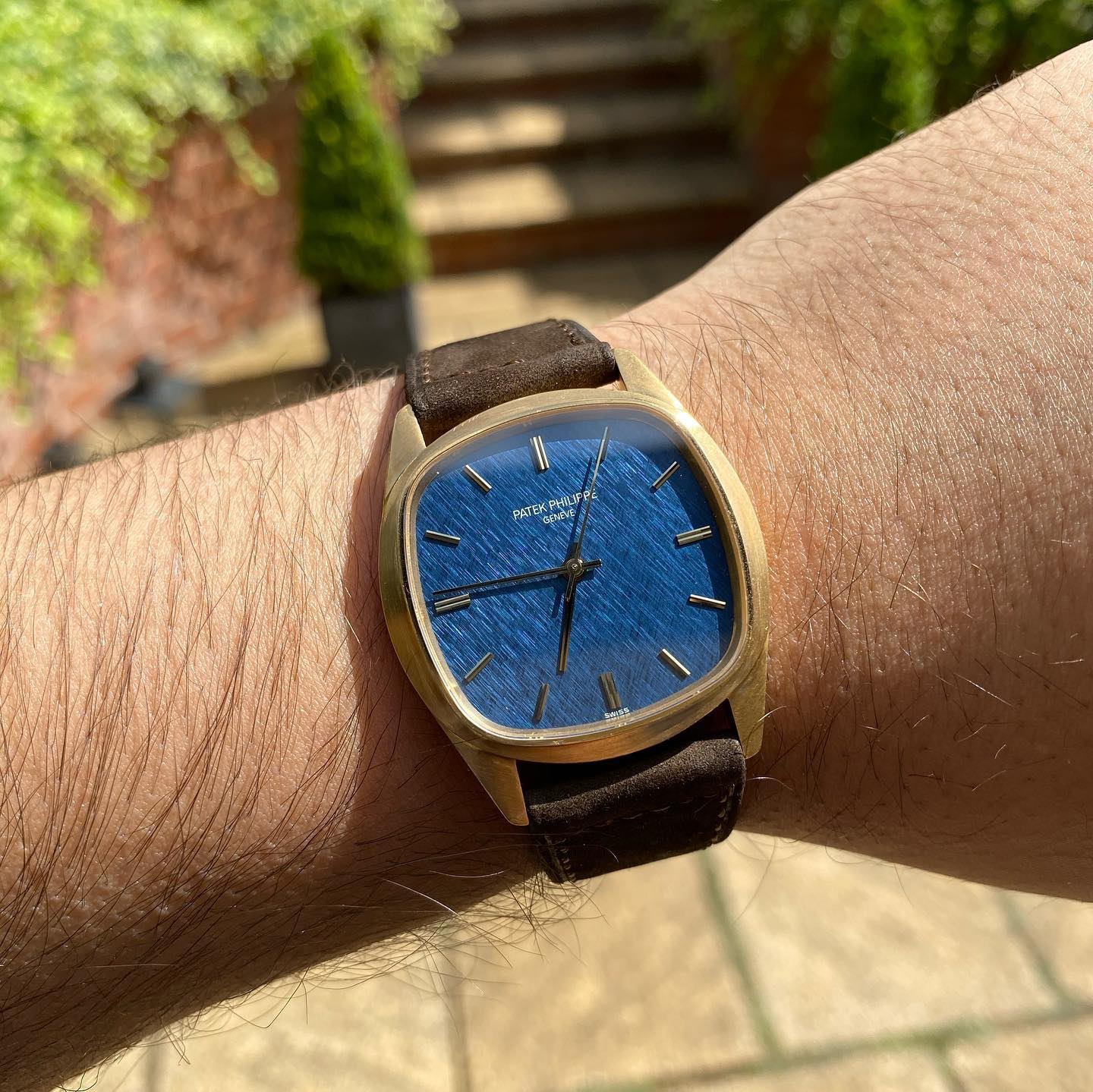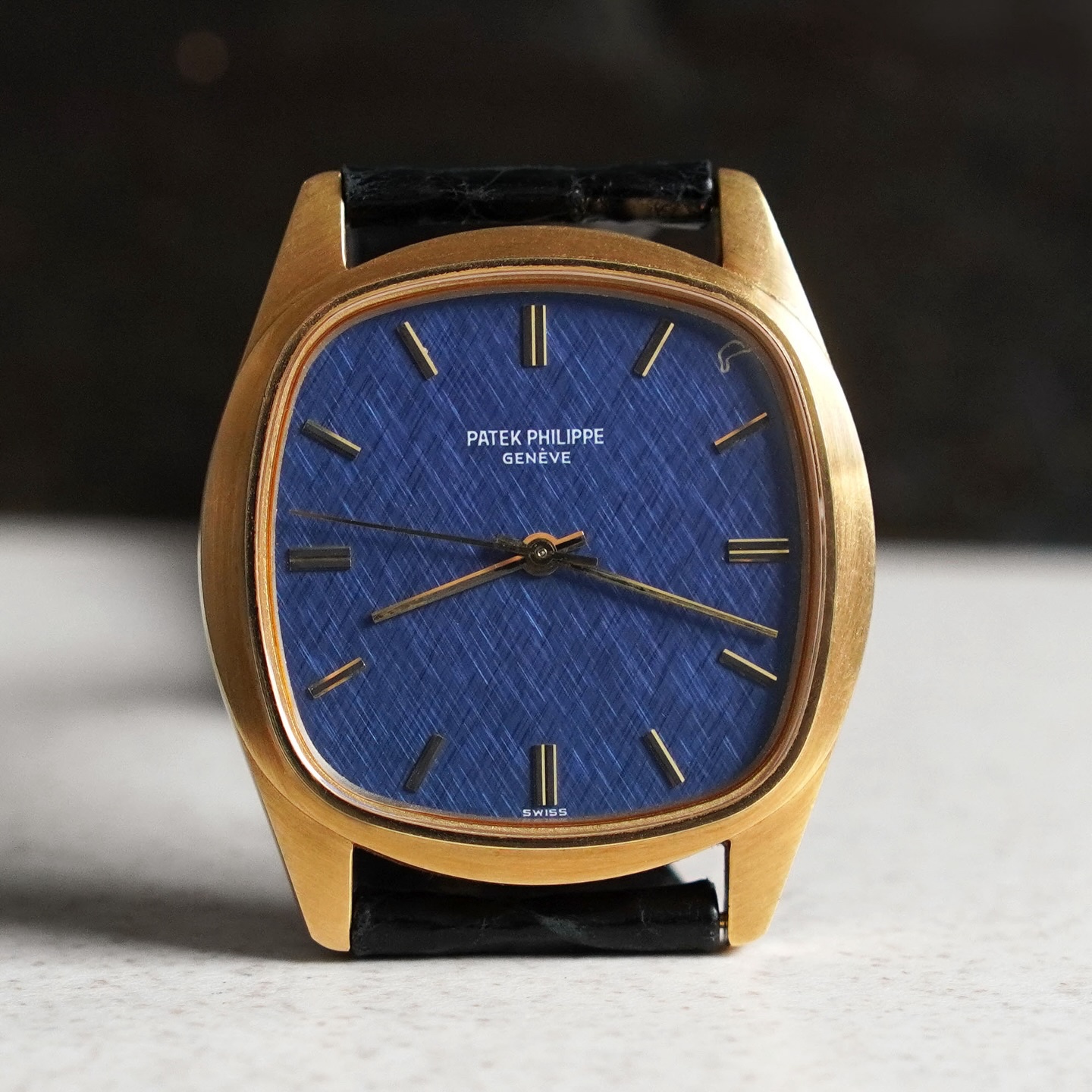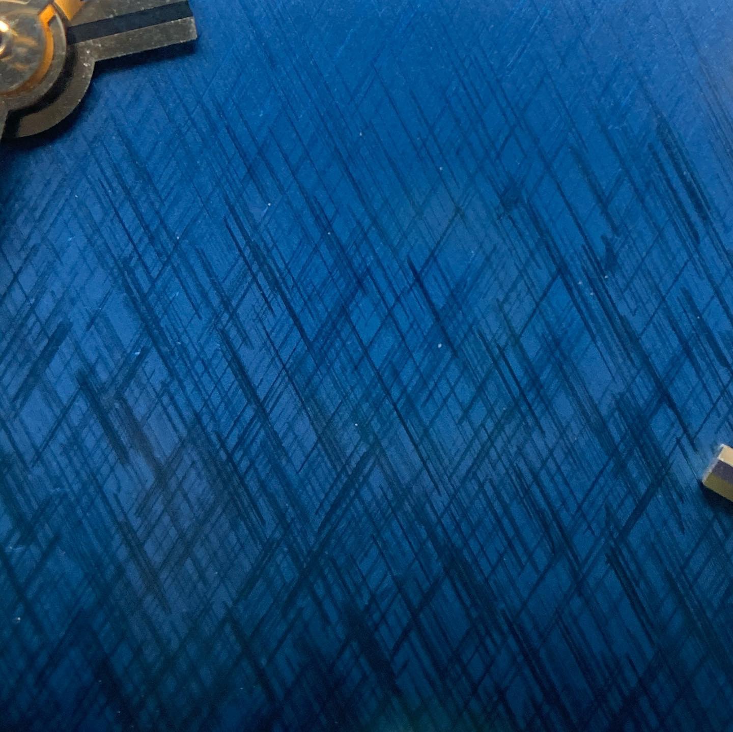 The Patek Philippe ref. 3585 has had multiple variants, among which some had an electric blue textured dial with ‘x-strokes’ or crosshatch or crossed shard-like pattern.