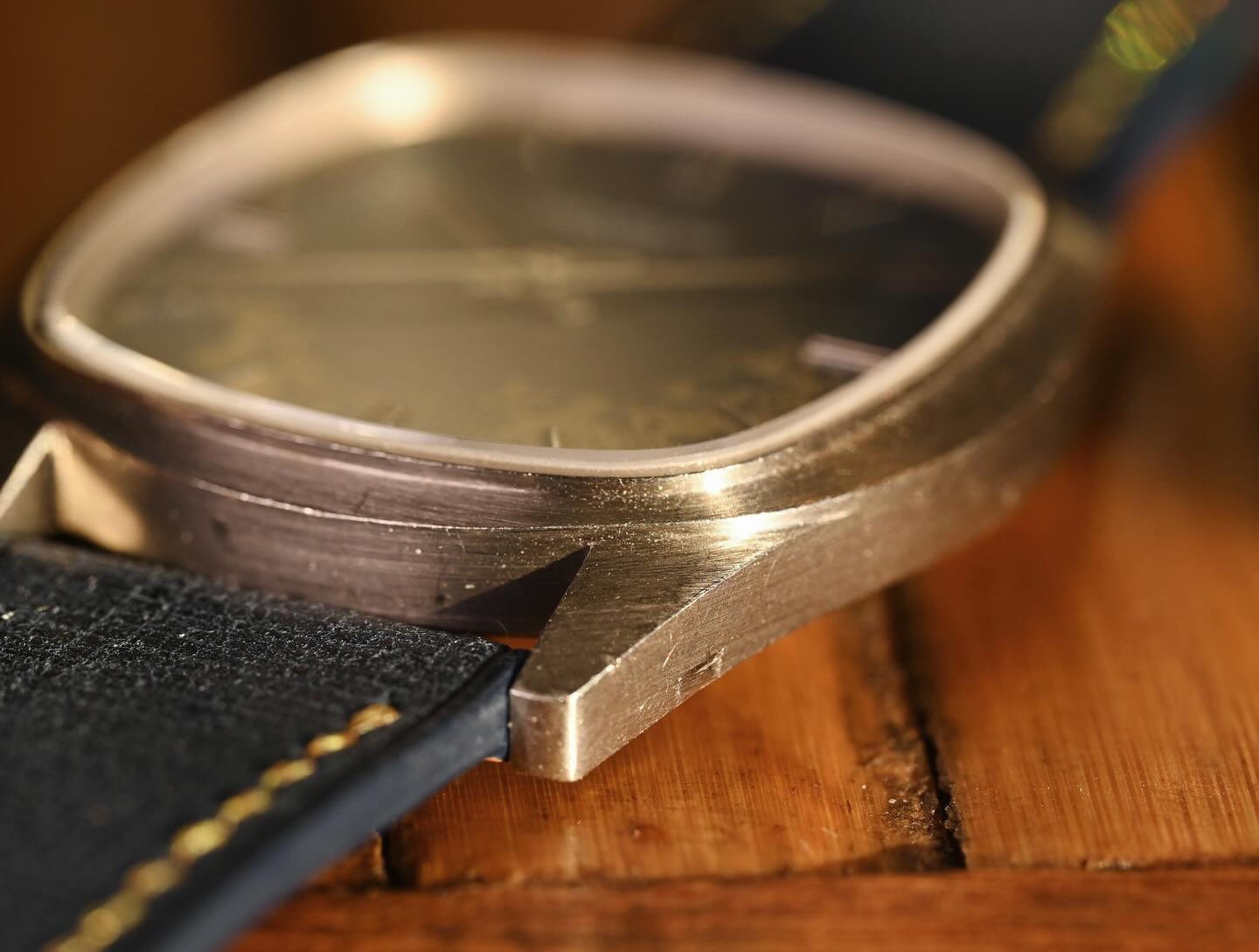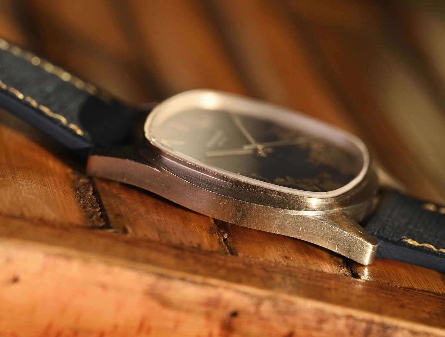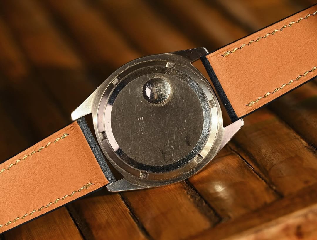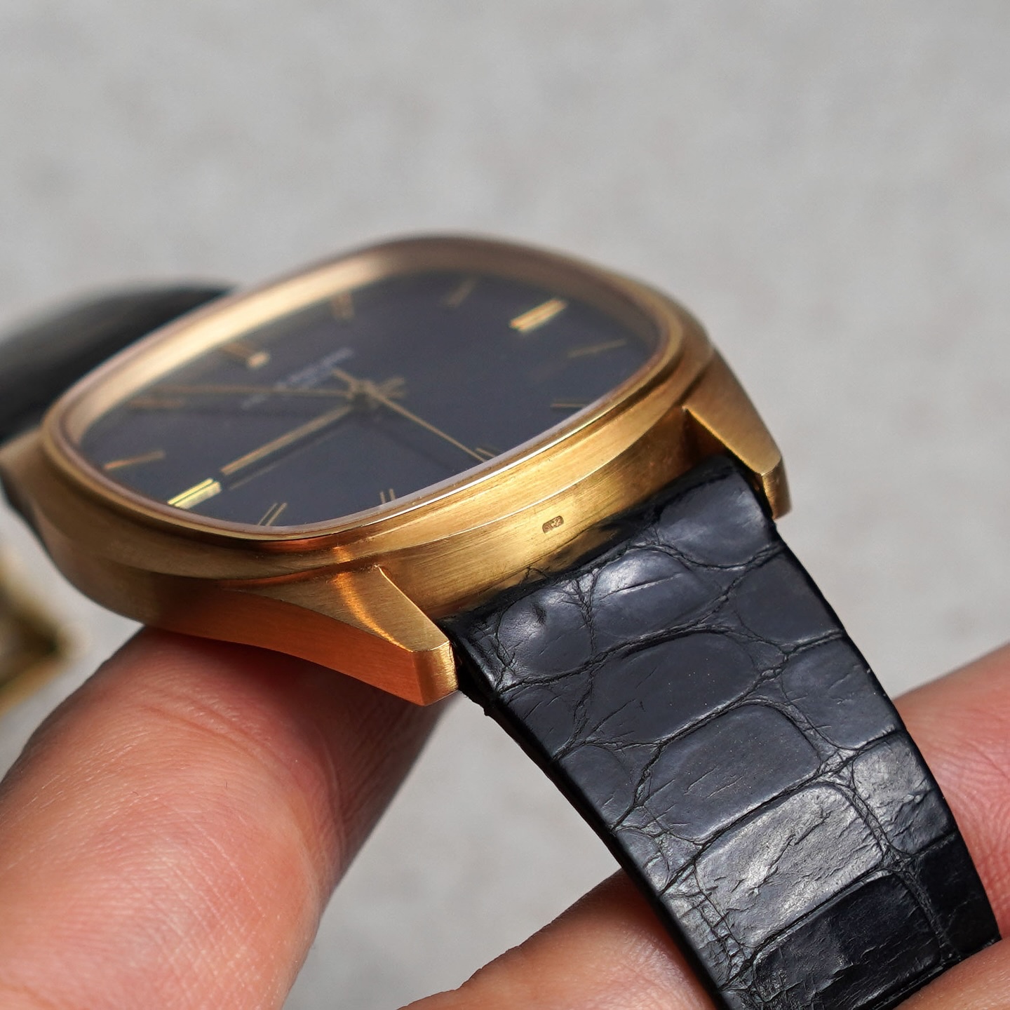 The case measures 36 x 42 mm and is 7.4 mm thick. The watch is powered by cal. 350 with bi-directional peripheral rotor and a backwind crown.