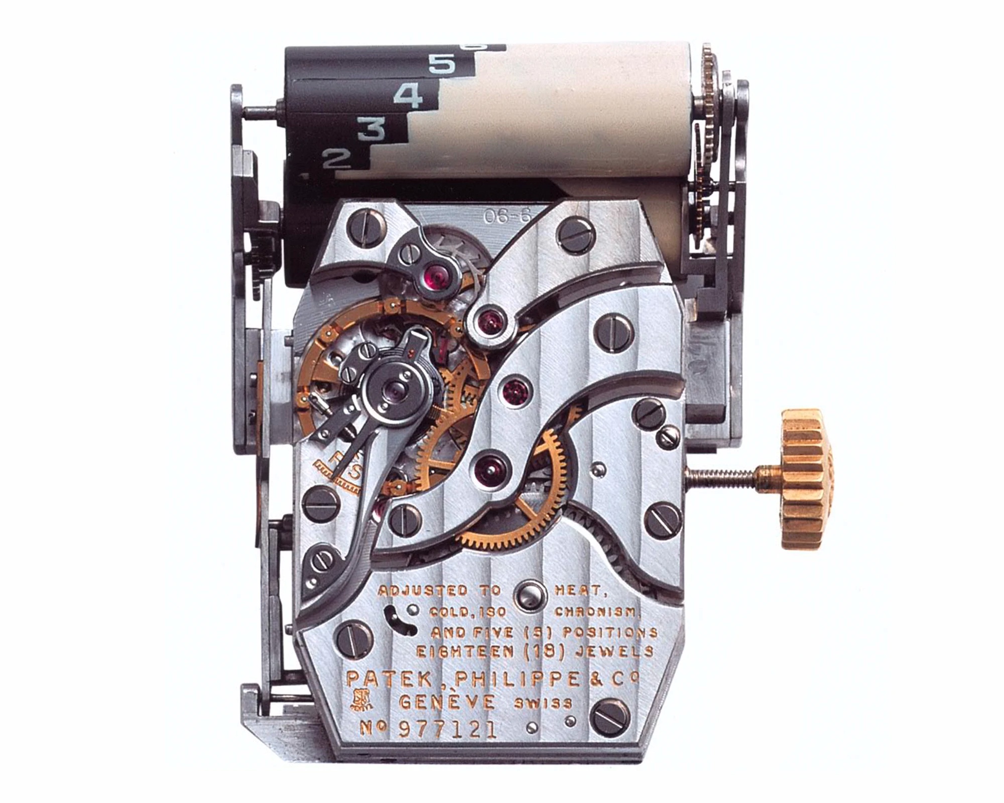 Surprisingly, the superimposed cylinders are linked to and powered by the legendary hand-wound caliber 9-90, which equips most of the Patek Philippe shaped watches from the 1940s and 1950s.