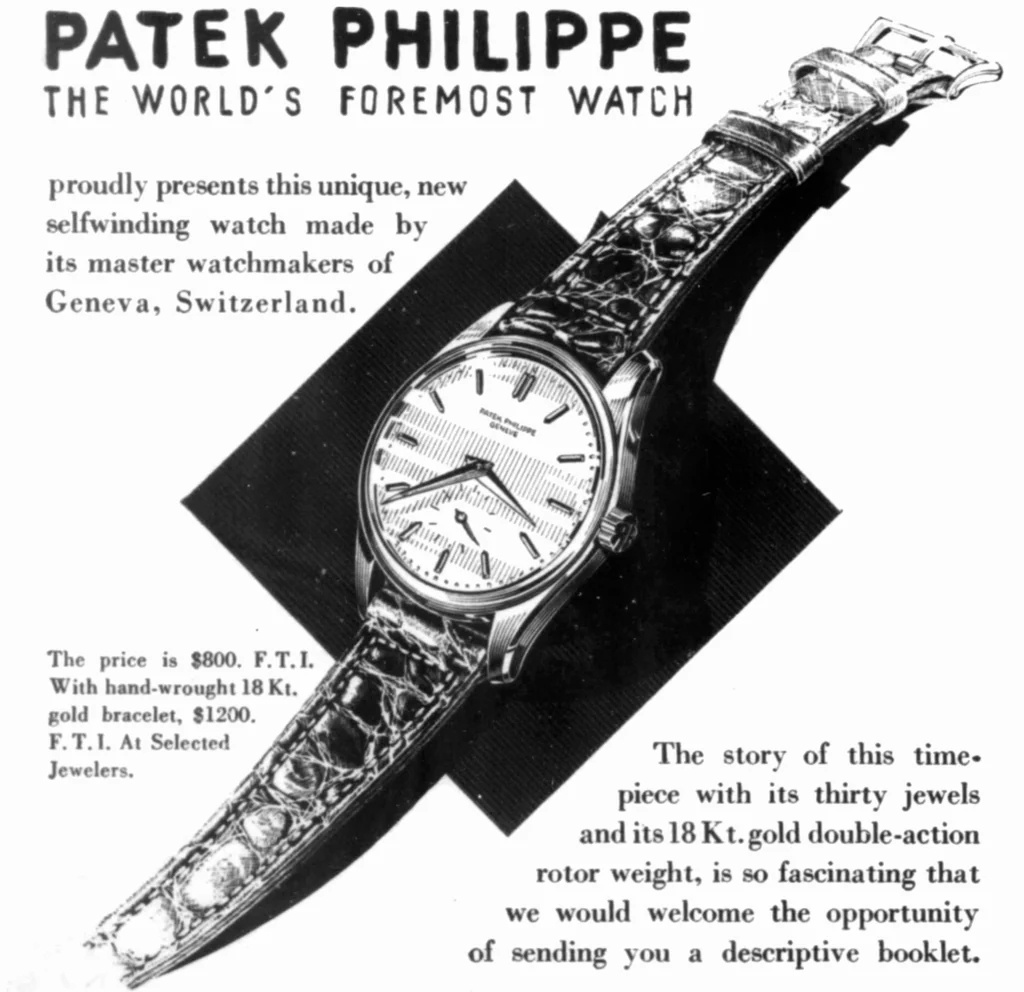 (Archival advertisement from the 1930s showing the original Patek Philippe ref. 96 Calatrava.)