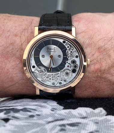 The Piaget Altiplano Double Jeu is a watch with two superimposed cases and two separate movements . What do you think of this very unusual take on the dual time complication ? Best, Emmanuel 1/ White gold ref. G0A32152 42 x 12 x 48.5 mm case and Piaget ca