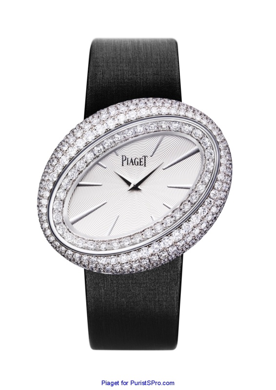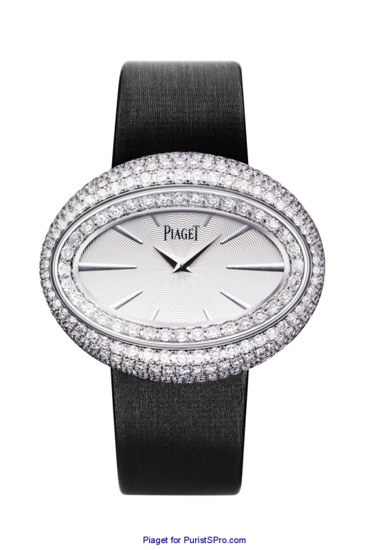 Silver-colored dial with sunburst guilloché motif, applied hour-markers and Piaget coat-of-arms in 18-carat white gold