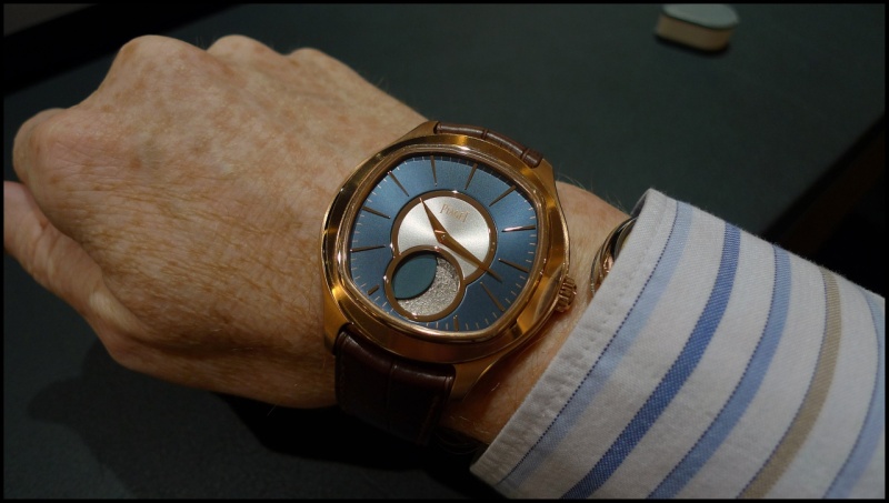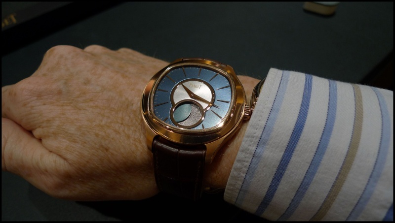 Carrying on from my recent visit to a Piaget Boutique I also tried on an alternative dress watch, the Emperador Coussin (cushion) Moonphase in RG.