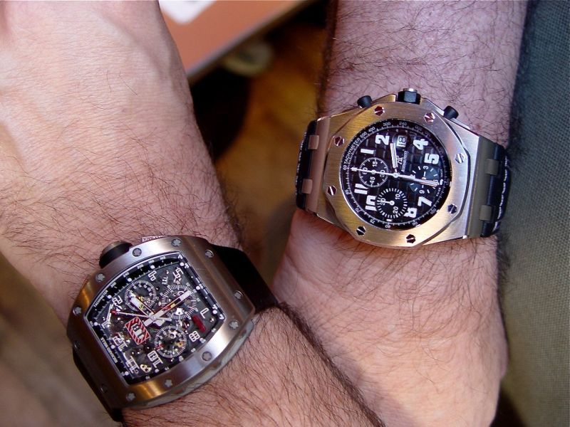 I was struck by this photograph recently posted on HoMe from the Purists Orange County GTG. Two chronos with date functions, both modular chrono designs with the module being constructed by the same subcontractor firm, the base automatic movement is different, RM being Vaucher, AP being (I think) the AP3120. This is what Richard Mille has brought to us - a different architecture and design for the watch, a different form. Common ownership (to some degree) and common collaboration through AP R&P.