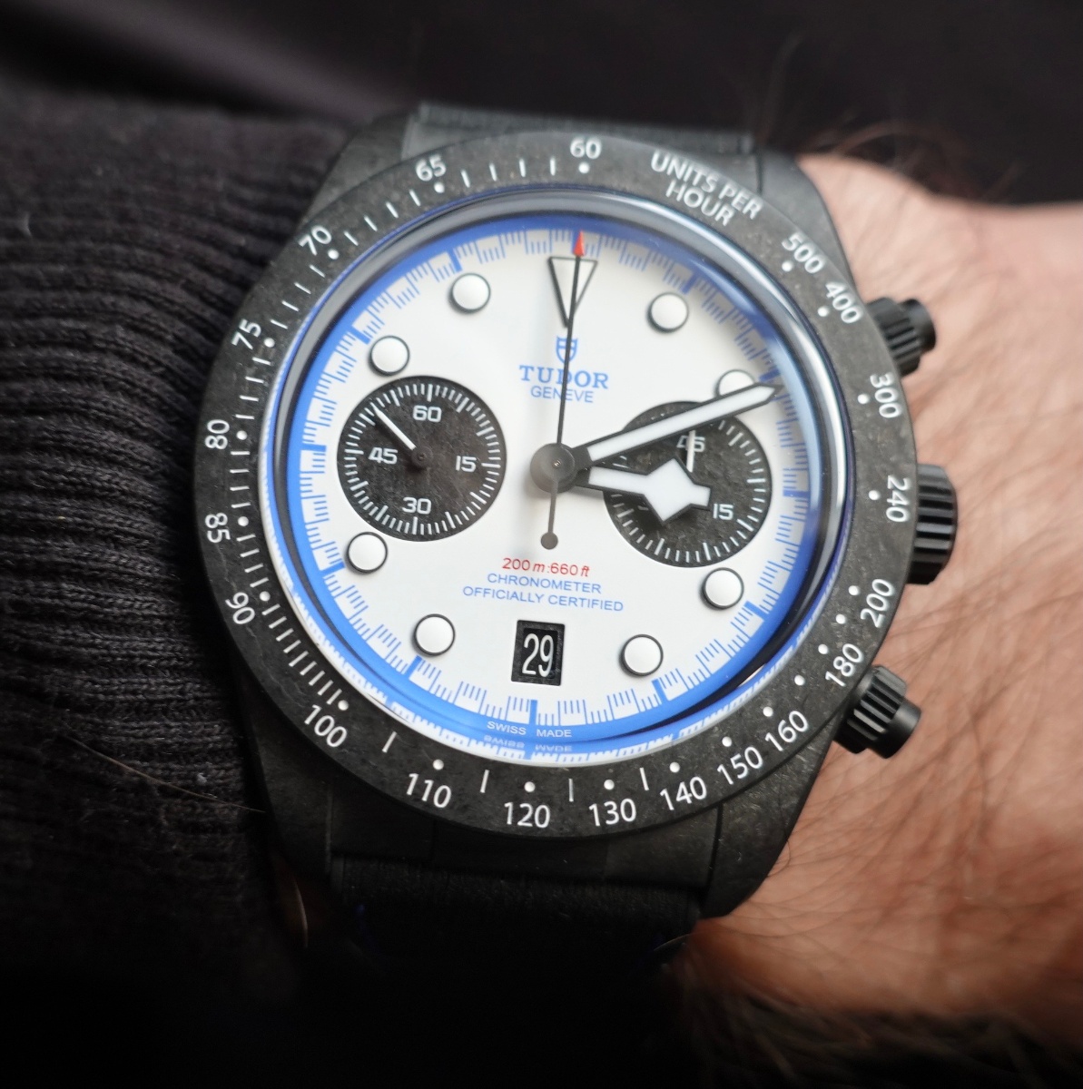 To my surprise, I saw this Black Bay Chronograph Carbon 25. I thought these watches were boutique only. Apparently this watch turned up, out of the blue, in a consignment of watches from Tudor. The dealer never expected to get one and consequently didn’t have a waiting list.
