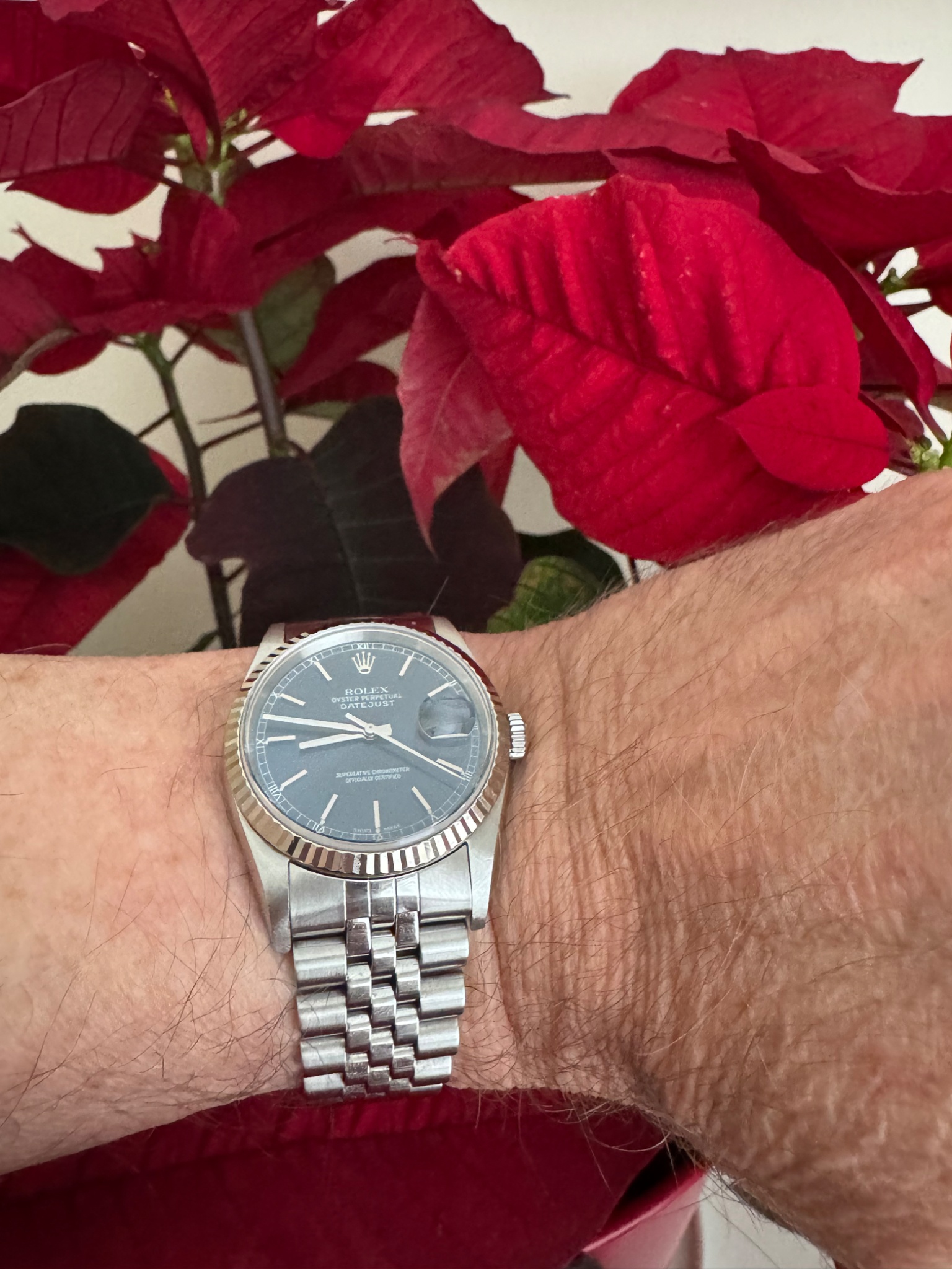 This has been a vibrant year for me with adding to my watch collection — Cartier, VC, Grand Seiko, Rolex and Baltic. I may be done — famous last words — but, I am so very content with my collection — all the bases are covered — except, perhaps, a salmon dial. This Rolex DJ, from 2000, was my final purchase of the year, last month, from a vintage watch shop in Copenhagen. It will be on my wrist to close out 2024. Blessings to all.