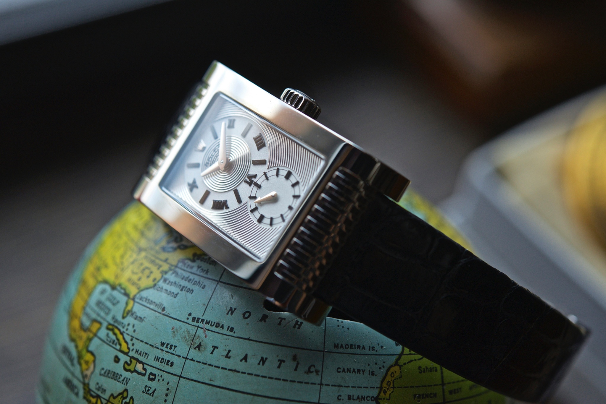 White Gold case (45 x 29 mm) and a silver dial with 'Godron Circuilaire' guilloche