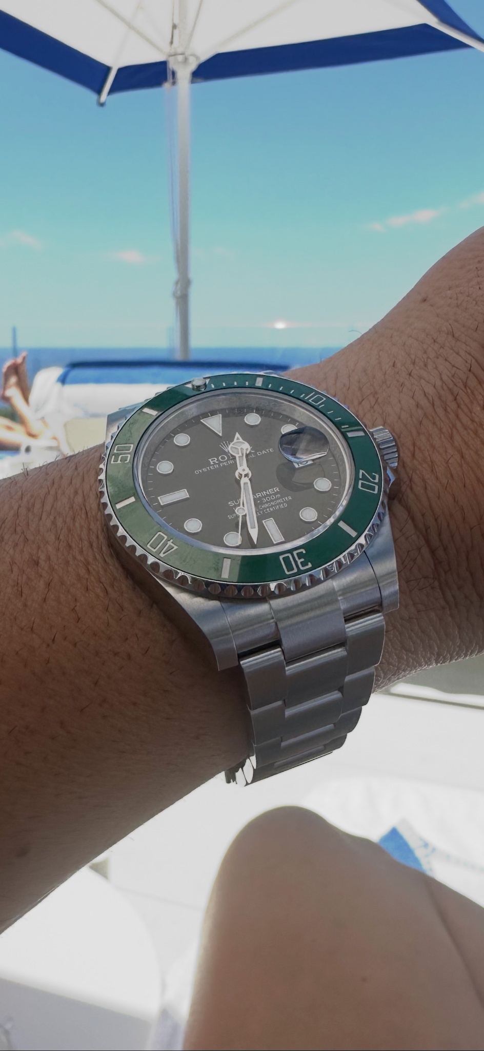 I have the green not the black. Love it. To me, the 5 digit Sib/GMT wears the best and this redesign of the supercase comes pretty close to it. I would have preferred a more tapered bracelet and smaller clasp but other than those small critiques it is really a pleasure to wear.