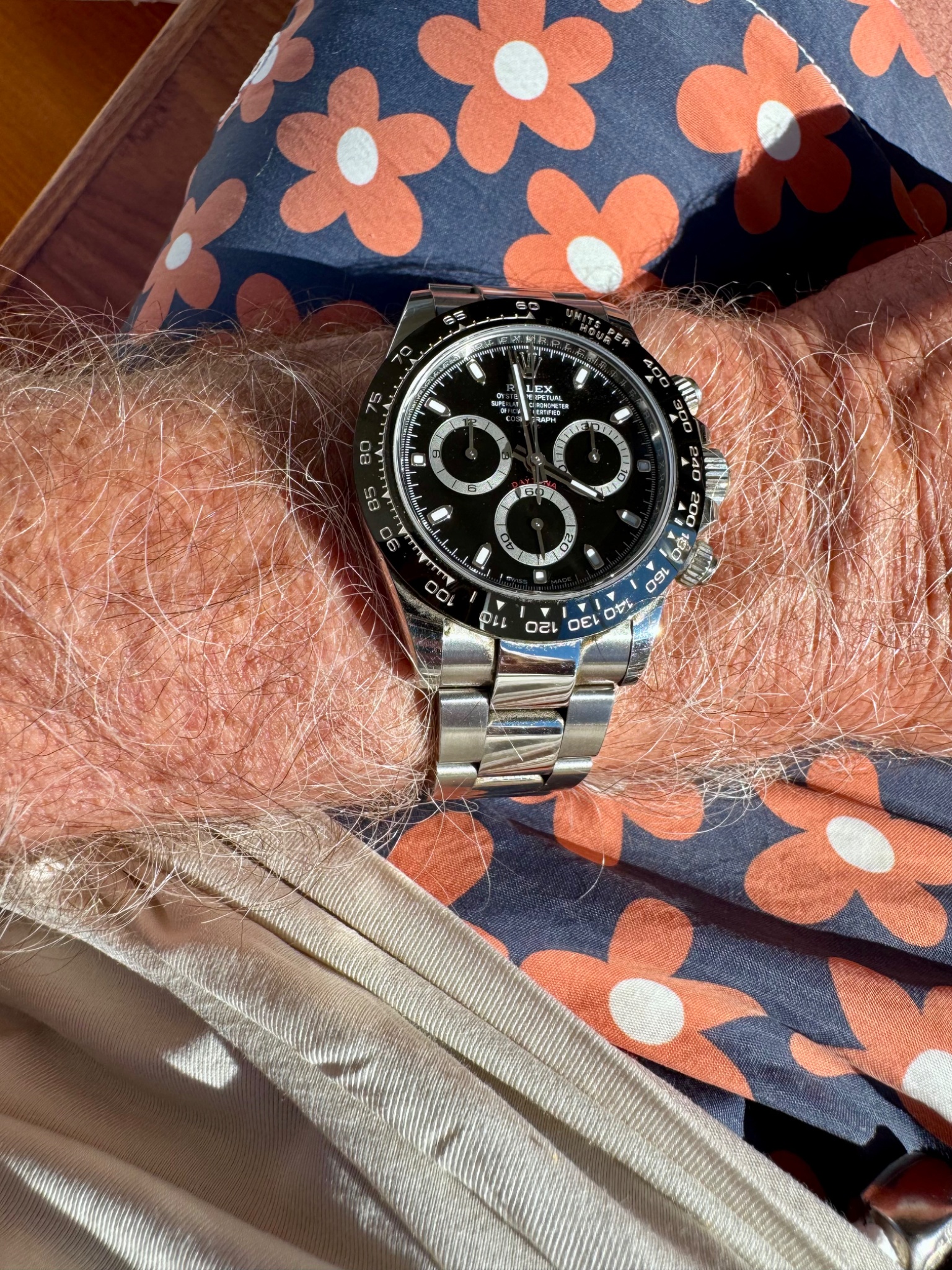 See a stunning Rolex Daytona champagne dial at dusk. Hmd4m shares a captivating wristshot of this iconic chronograph.