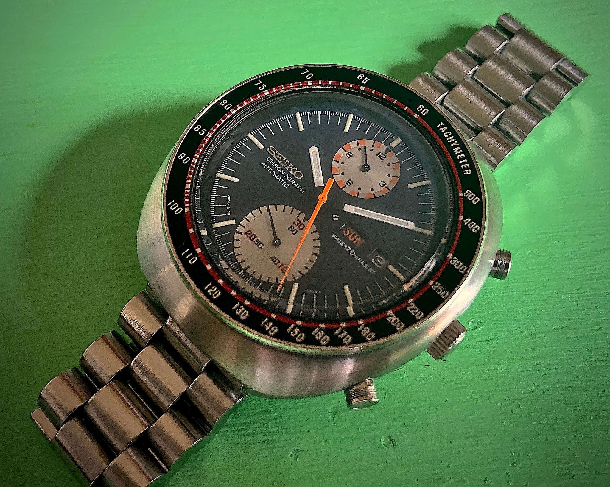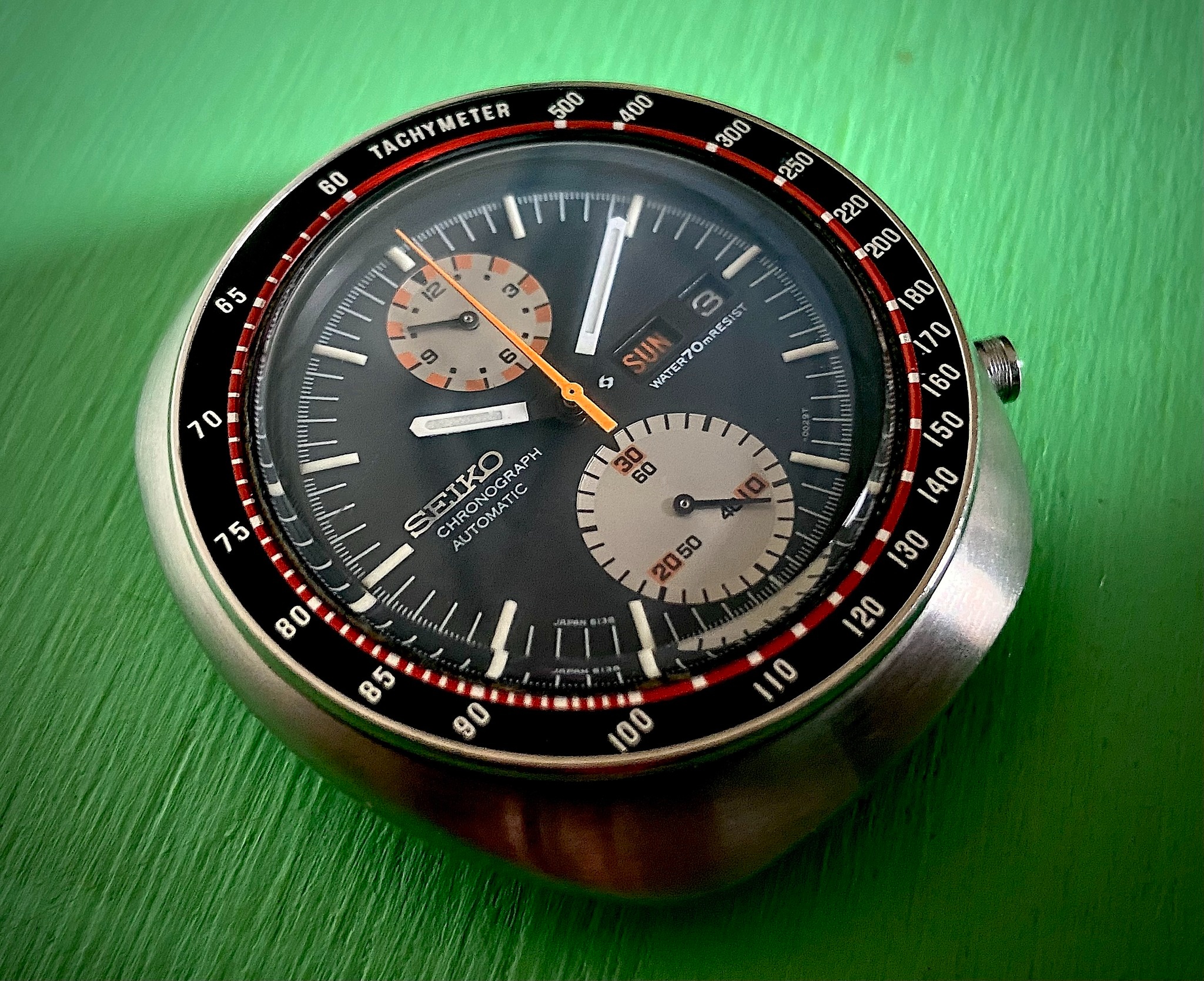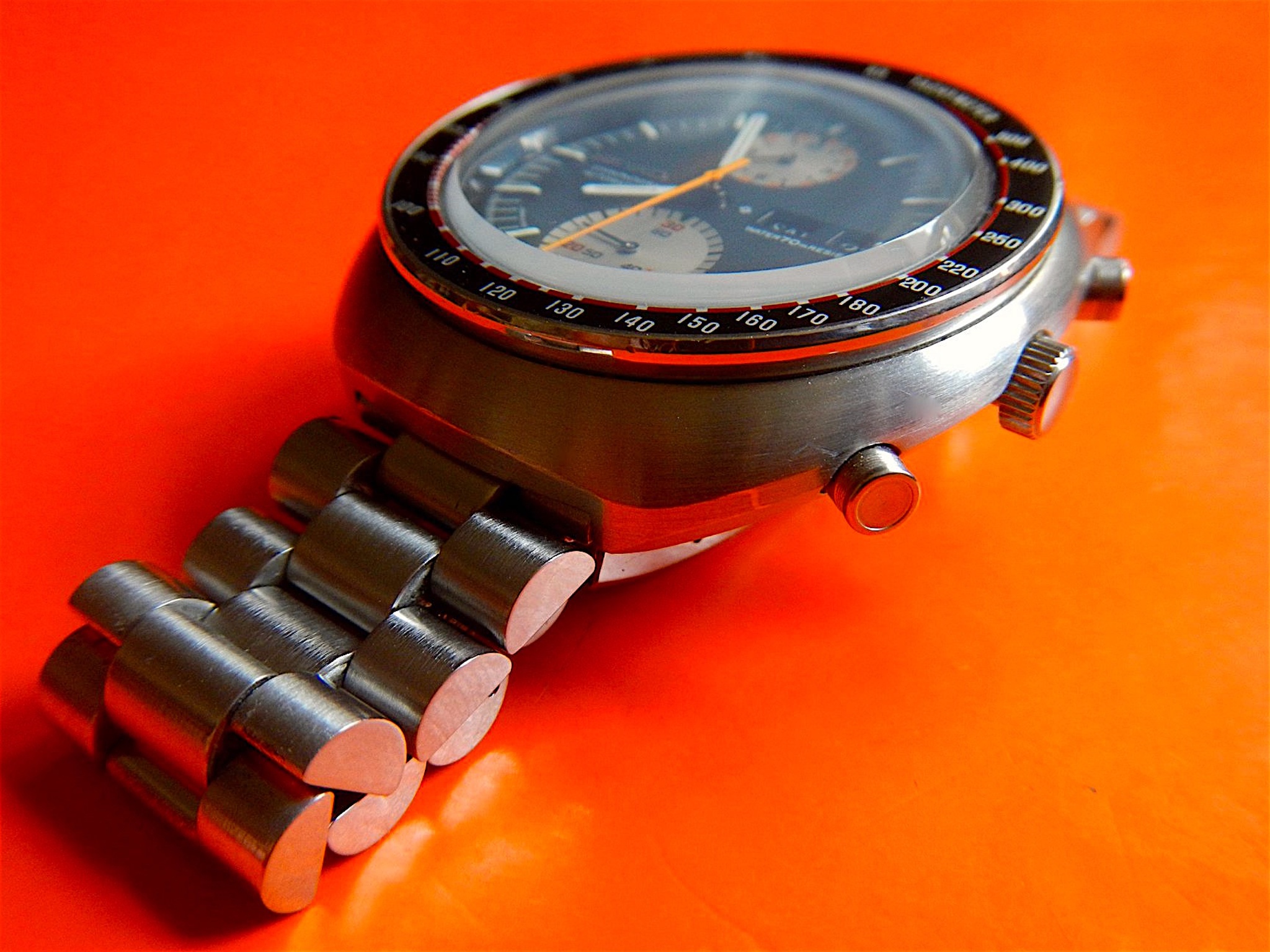 Caliber 6138 movement: automatic chronograph with vertical clutch and column wheel. circa: 1971 March paired with: SEIKO branded STELUX Presidential SS bracelet ...
