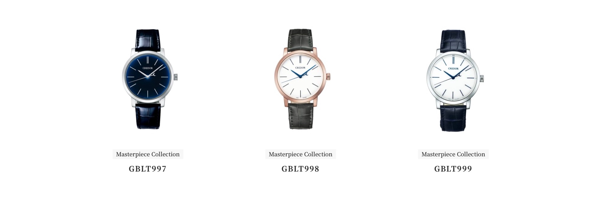 Let's start with Credor, because it's alphabetically first, and much easier to summarize. There are three lines: Goldfeather, Locomotive, and Masterpiece