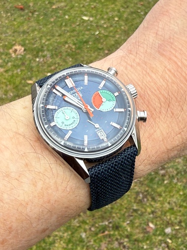 Close but no cigar. While the 1968 Heuer Skipper still is my dream, a grail, even, the 2023 is cool, but could have been even better. For the 2023 edition, they should have kept it simple: Remove the unnecessary text, just keep Heuer Skipper, at 12. Remov